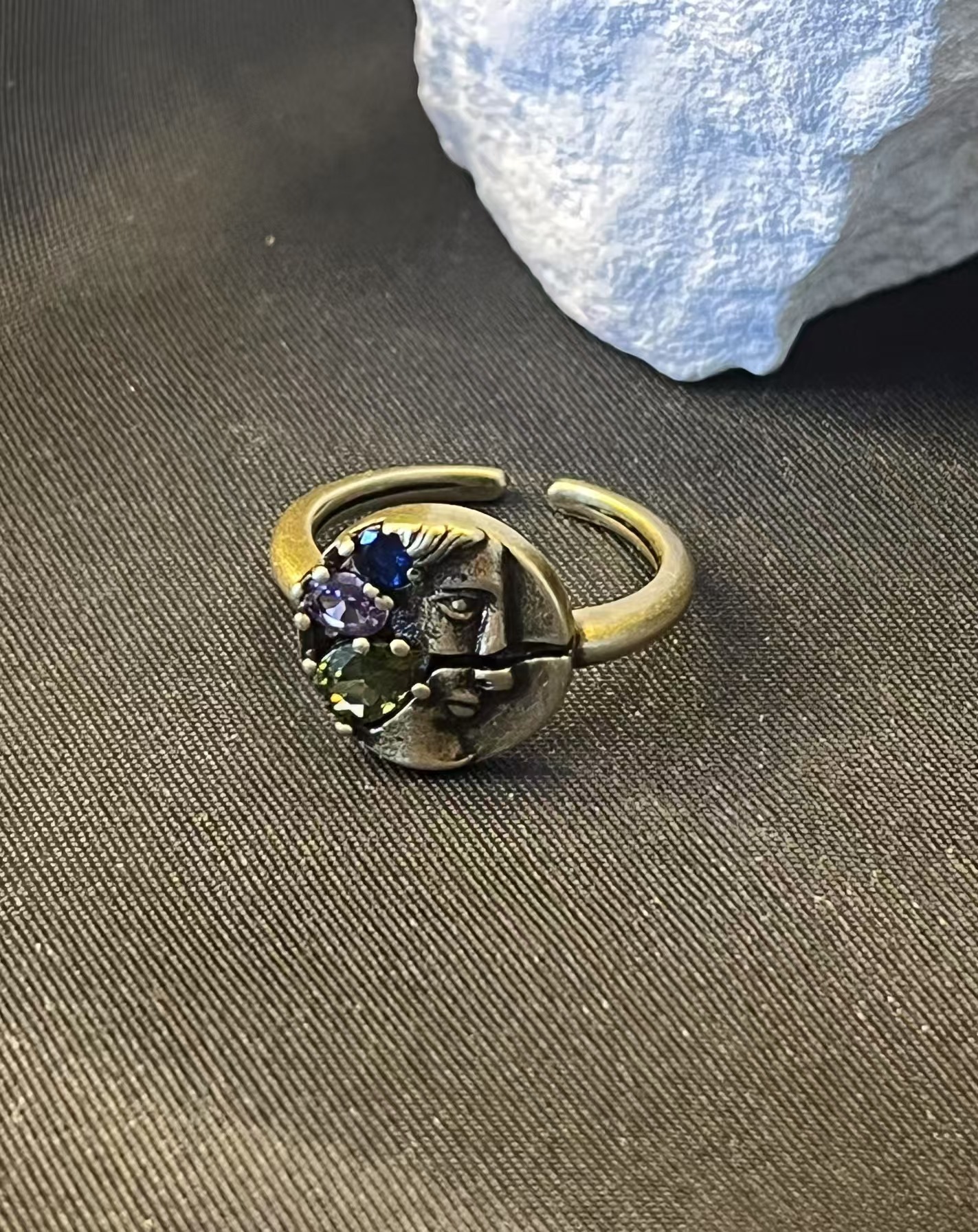 Little Red Book Designer Goddess Retro Greek Mythology Color Zirconium Court Art Old Index Finger Casting Craft Ring