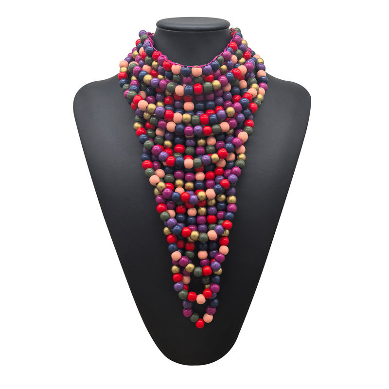 European and American color wooden beads multi-layer bib tassel neck chain handmade beaded African necklace women wholesale necklace
