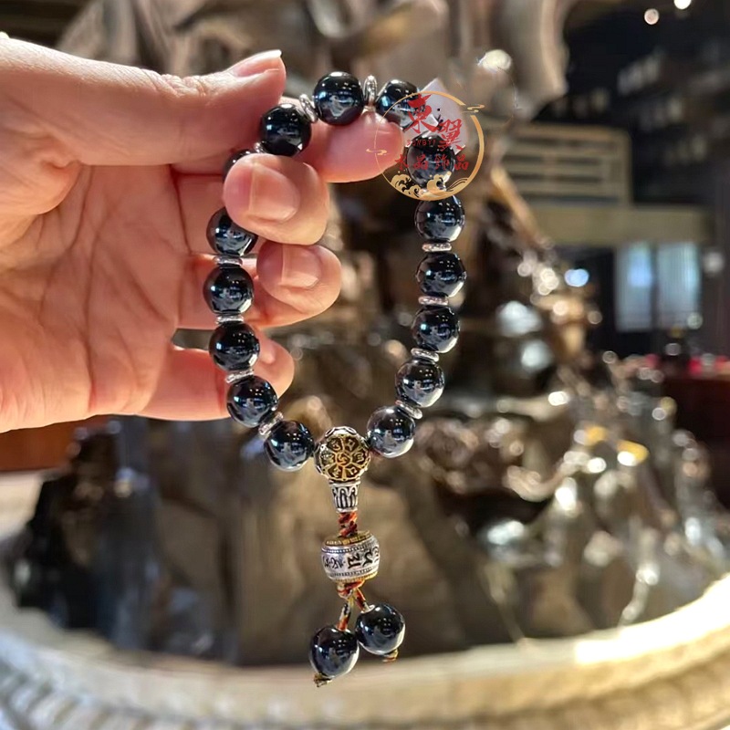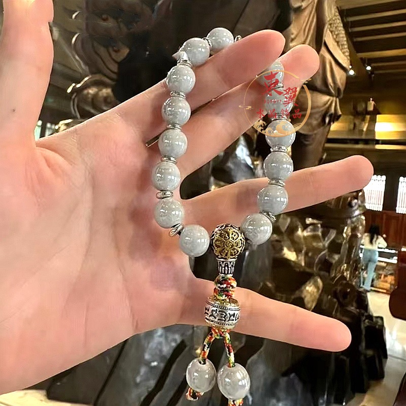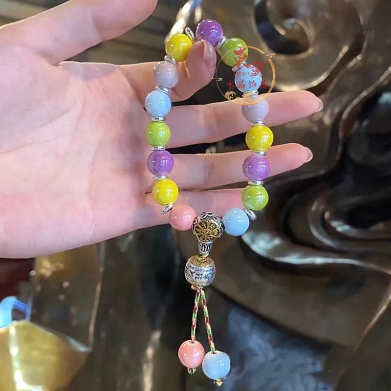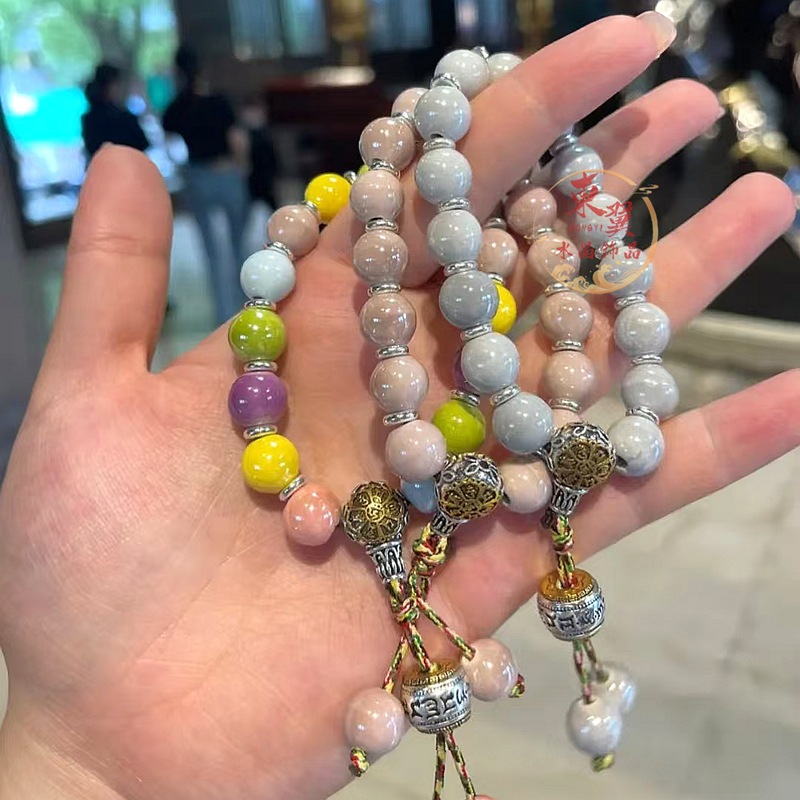 Hangzhou Xiangji Bracelet Duobao Macaron Grey Powder Black Porcelain Six-character Barrel Beads Fragrant Grey Glass Gold Foil Jewelry Bracelet