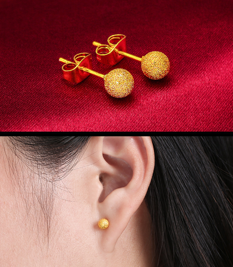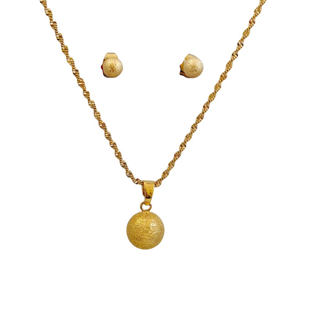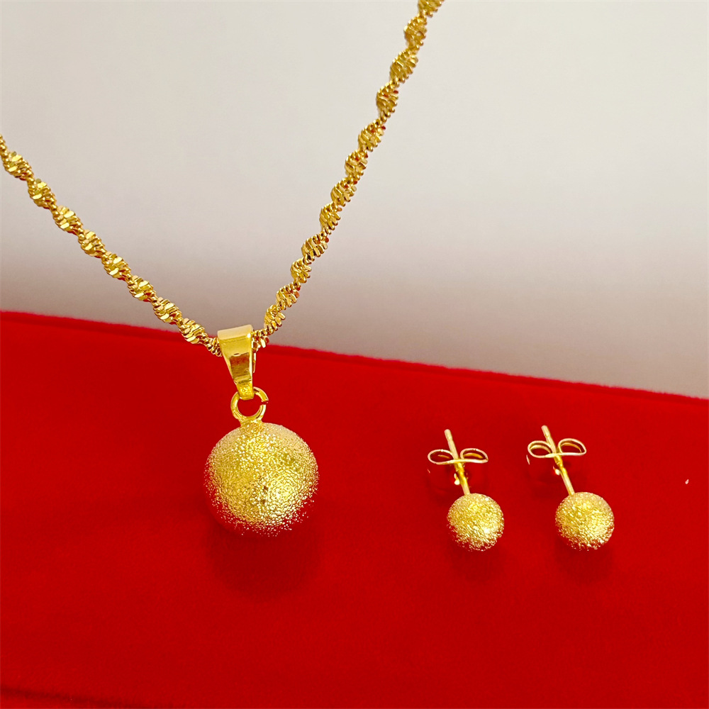 Sand gold jewelry suit frosted ball ball pendant necklace earrings two-piece copper gold-plated jewelry suit