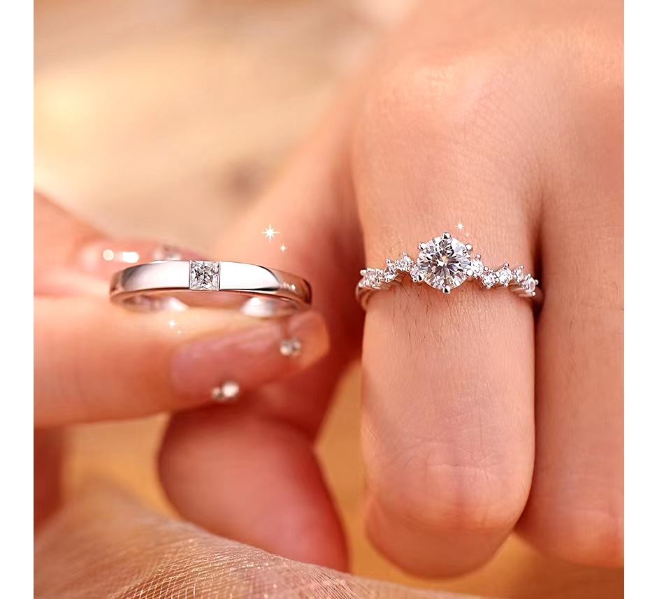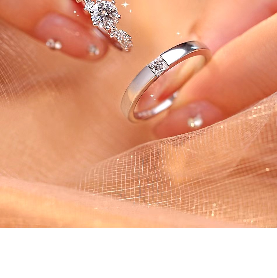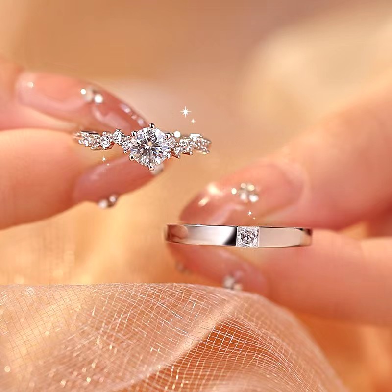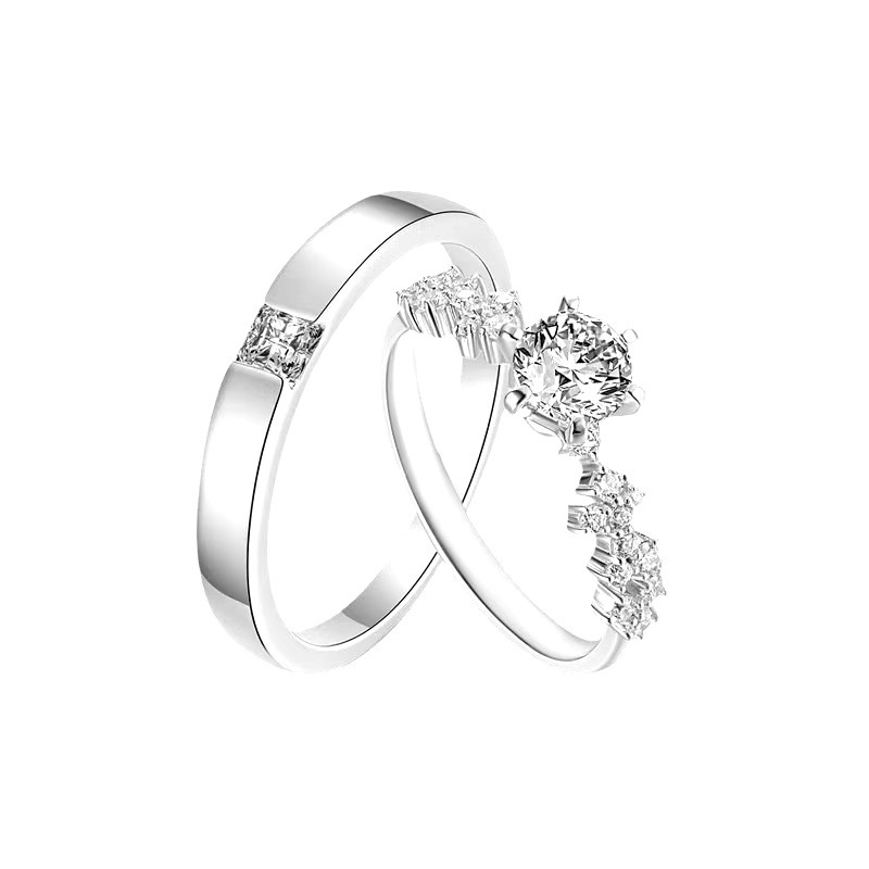 Couple Diamond Ring, Female Sterling Silver Ceremonial Wedding Ring, Wedding Ring, Simulated Proposal Ring, Anniversary Gift