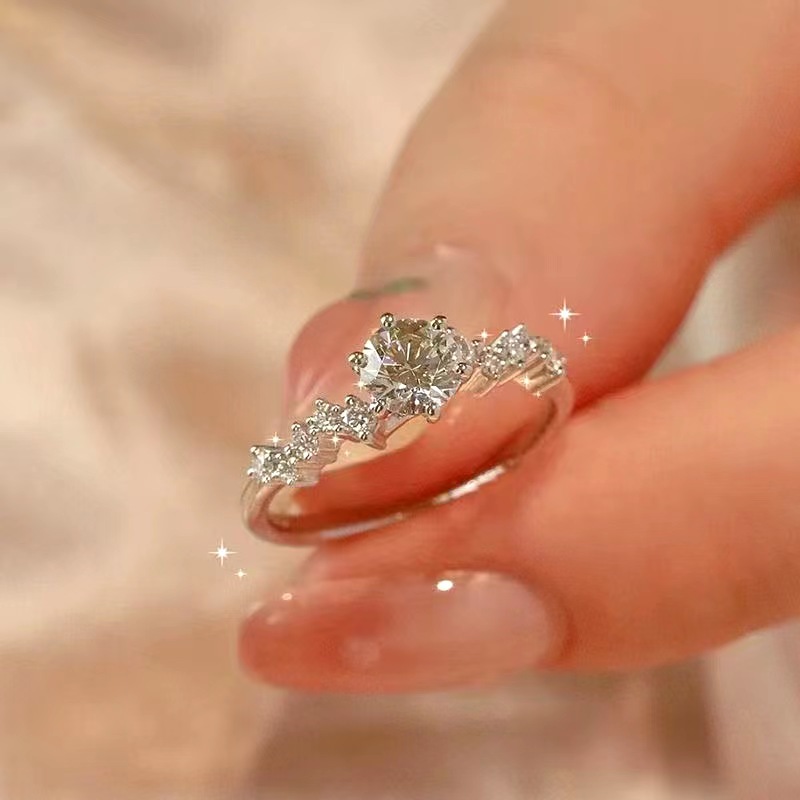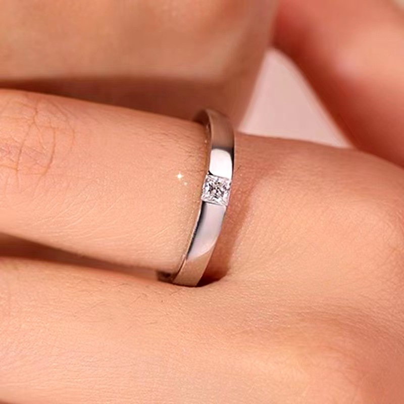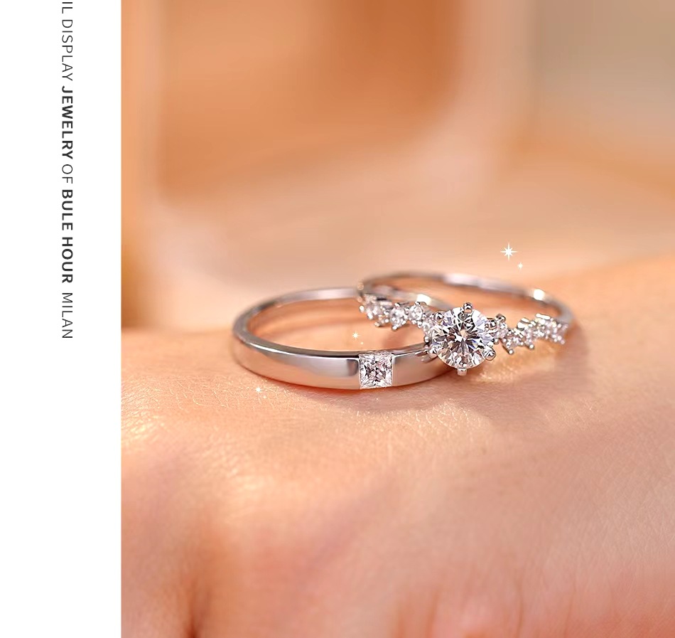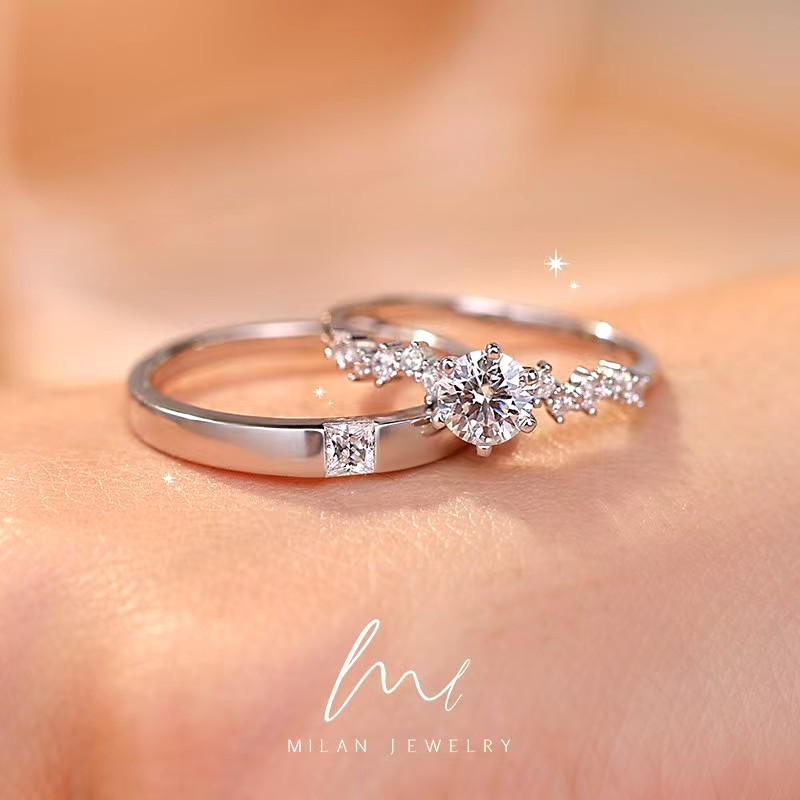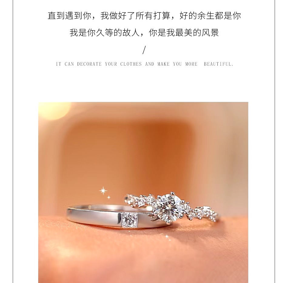 Couple Diamond Ring, Female Sterling Silver Ceremonial Wedding Ring, Wedding Ring, Simulated Proposal Ring, Anniversary Gift