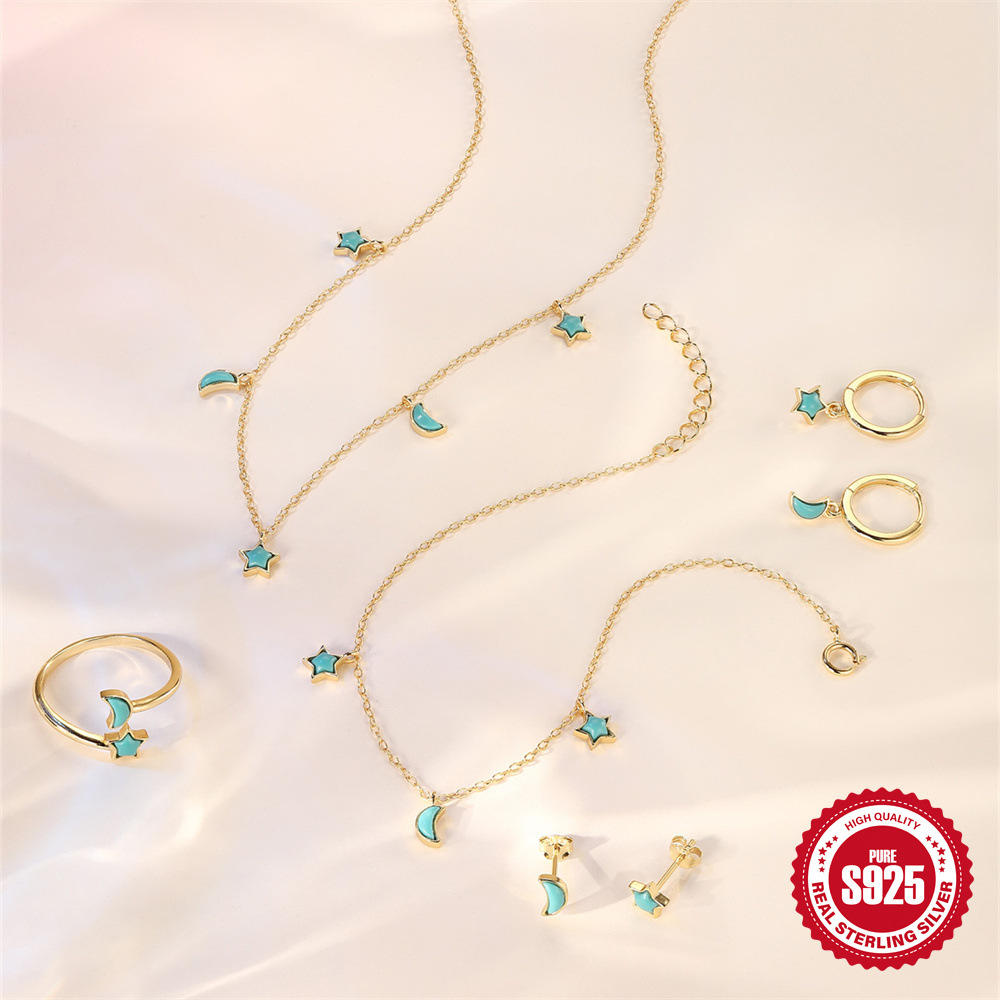 【品牌】:ROMAD【编号】:首饰套装【材质】:S925纯银+环保电镀+绿松石【重量】:约 1.9g