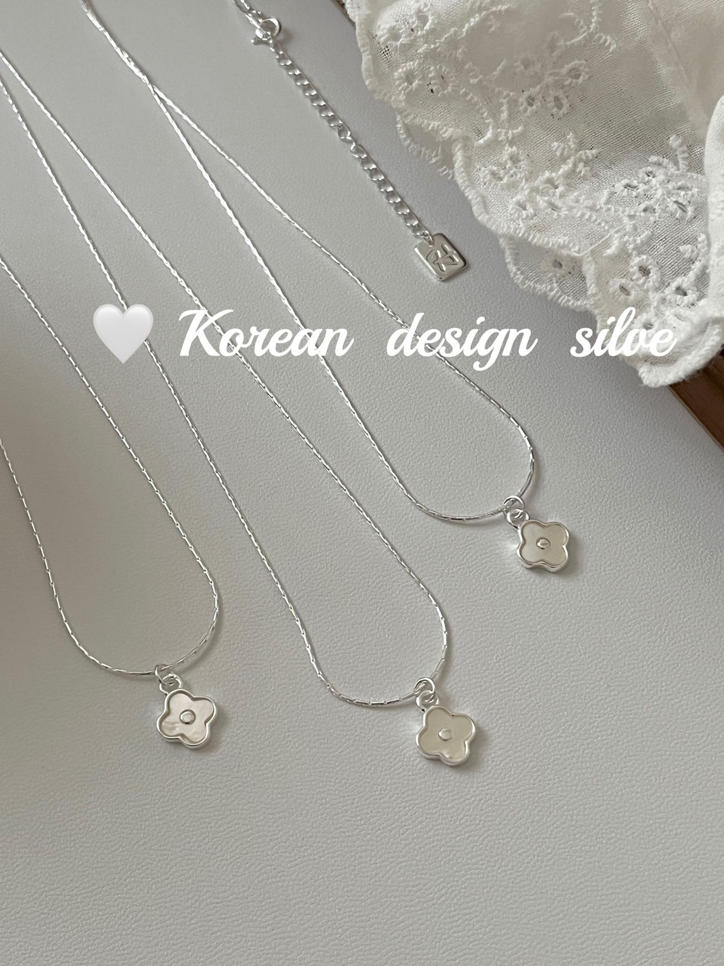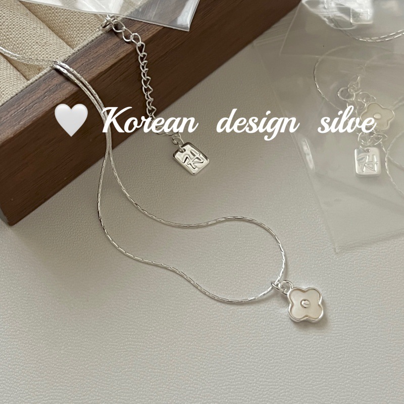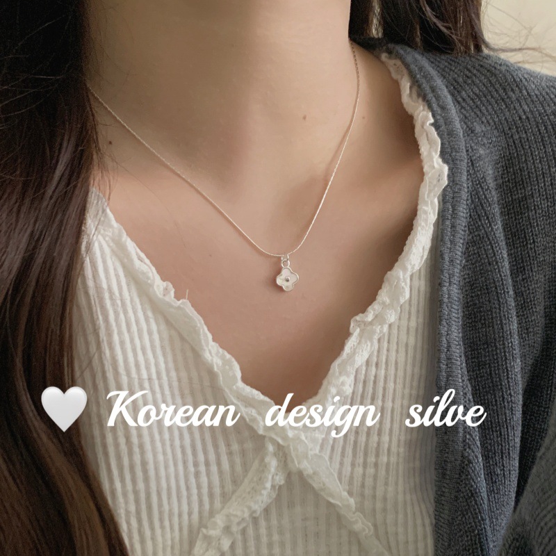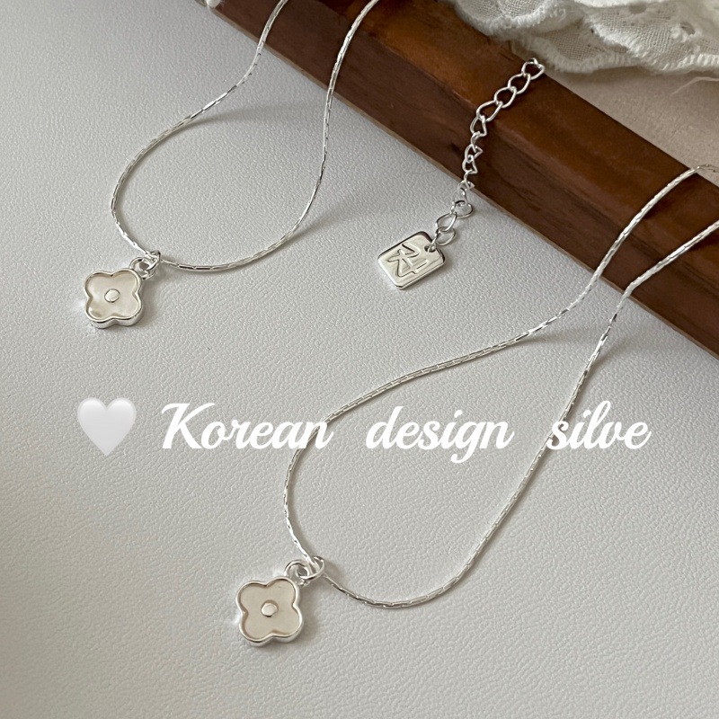South Korea ins Cute Mini Niche Design Sense Silver Jewelry S925 Sterling Silver White Fritillaria Four-leaf Clover Necklace All-match