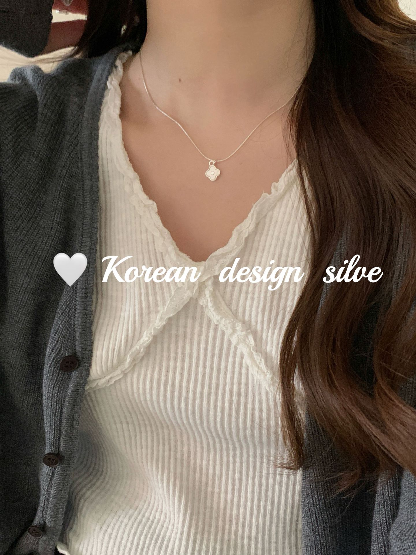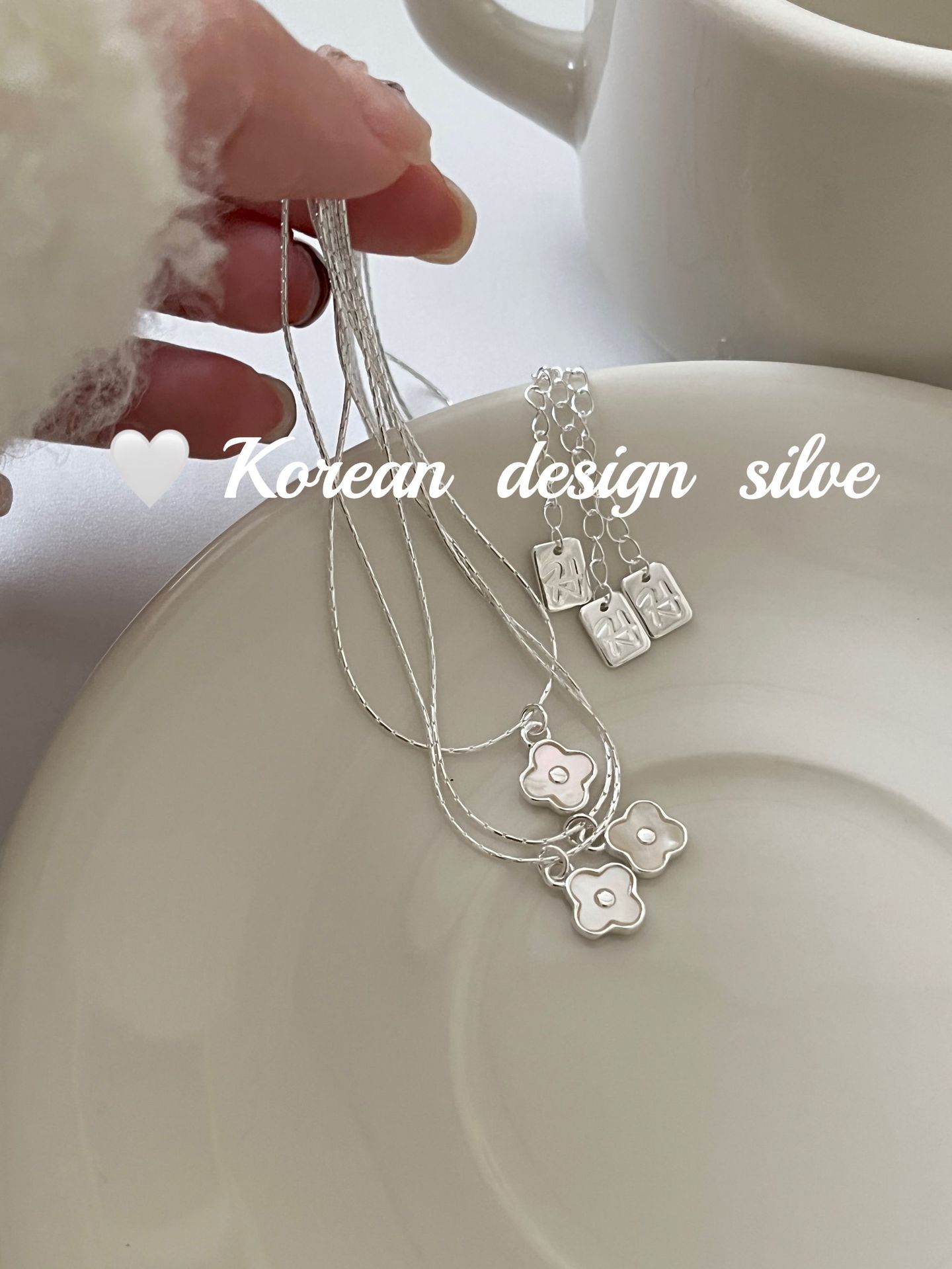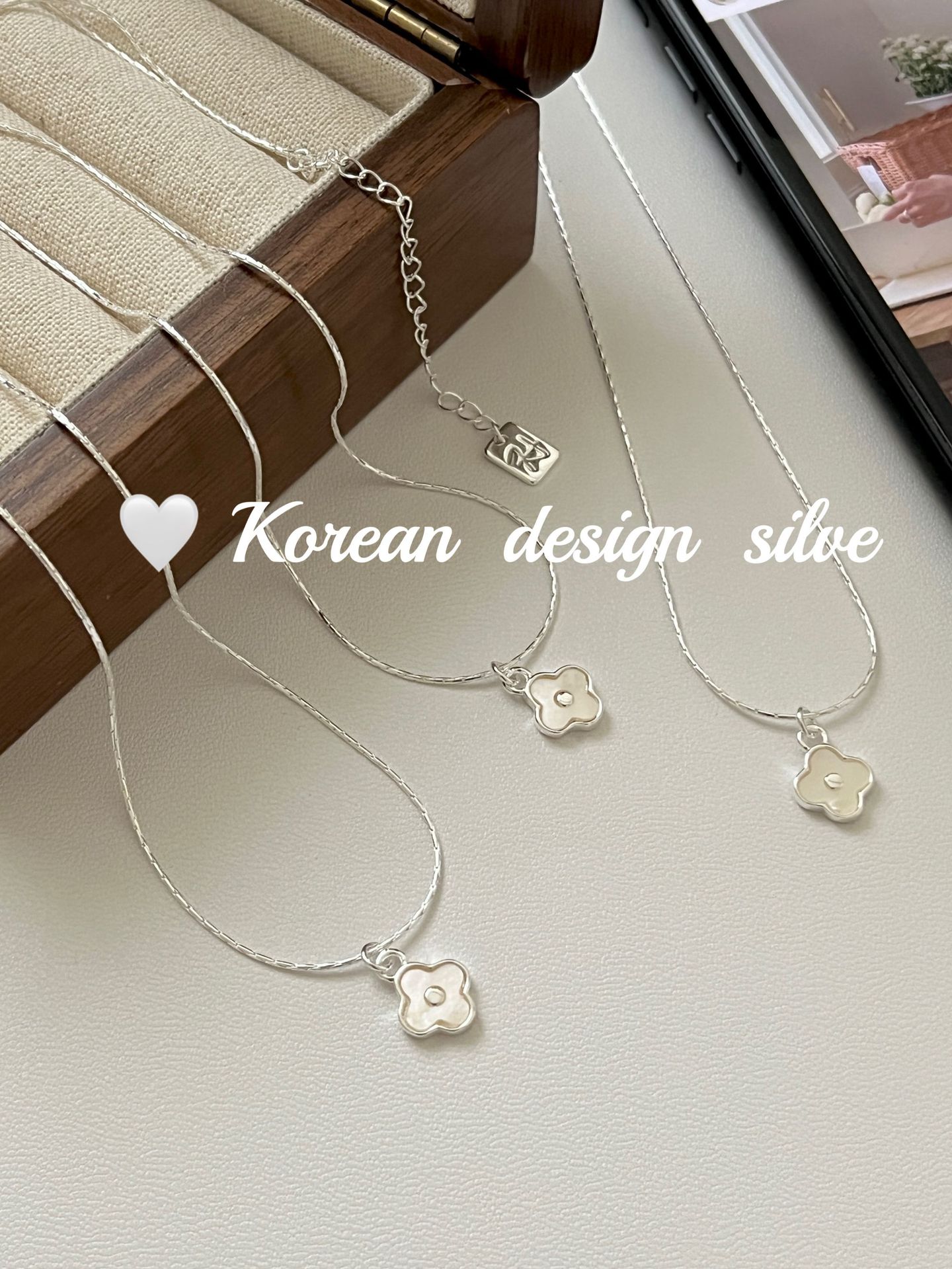 South Korea ins Cute Mini Niche Design Sense Silver Jewelry S925 Sterling Silver White Fritillaria Four-leaf Clover Necklace All-match