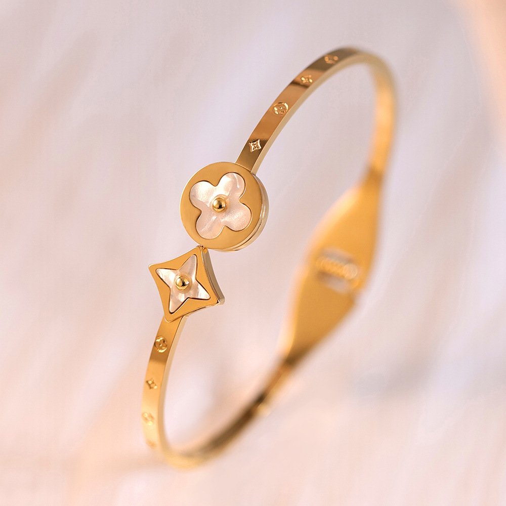 Europe and the United States cross-border wholesale women's wholesale high-level sense of non-fading jewelry women's electroplating golden Great Wall pattern titanium steel bracelet
