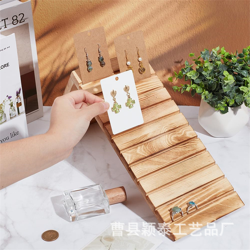 Wooden Earring Card Rack Store Retail Jewelry Display Props Dresser Ornaments Tilt Ring Solid Wood Storage Rack