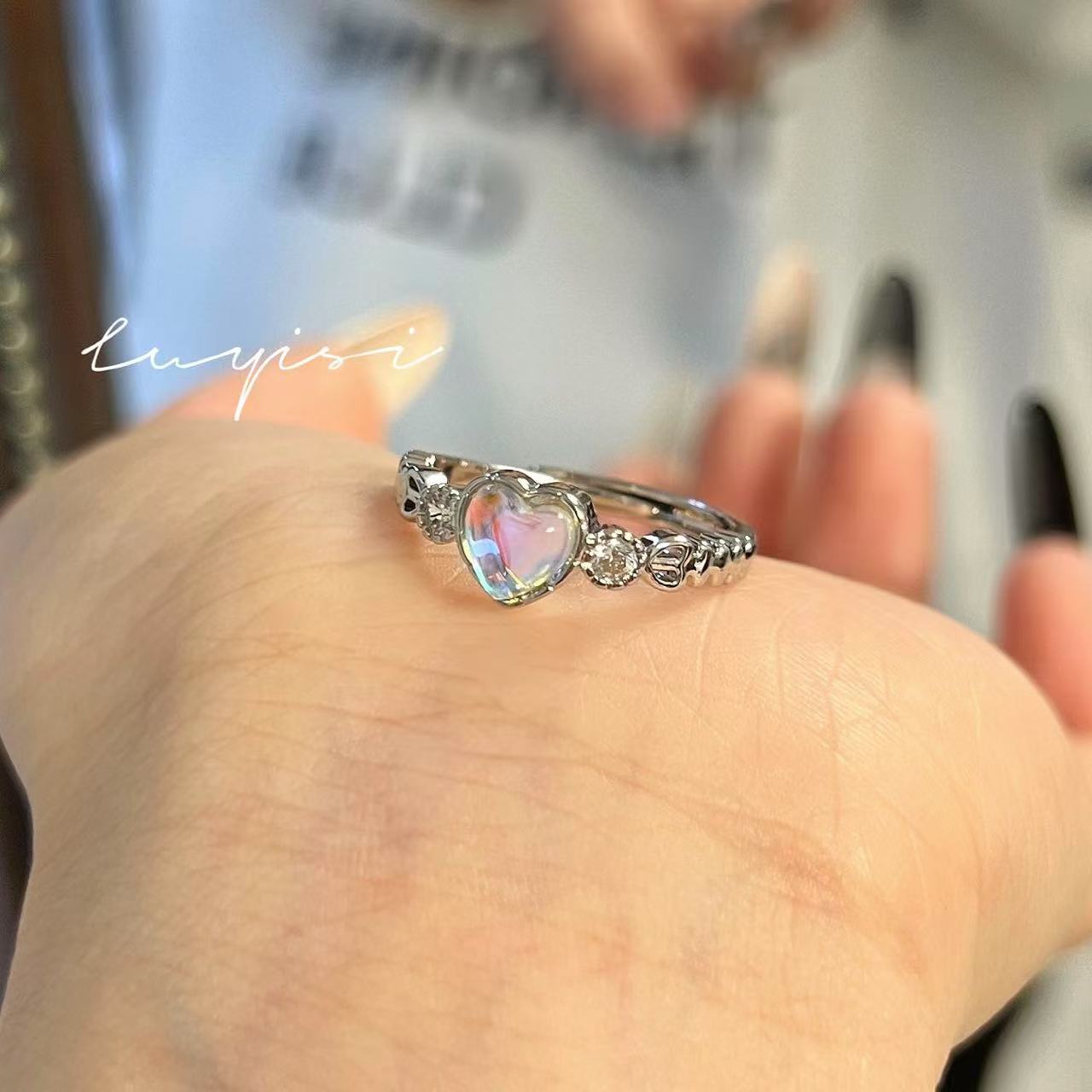 New love moonstone ring female online red live light luxury niche exquisite design food finger ring manufacturers wholesale