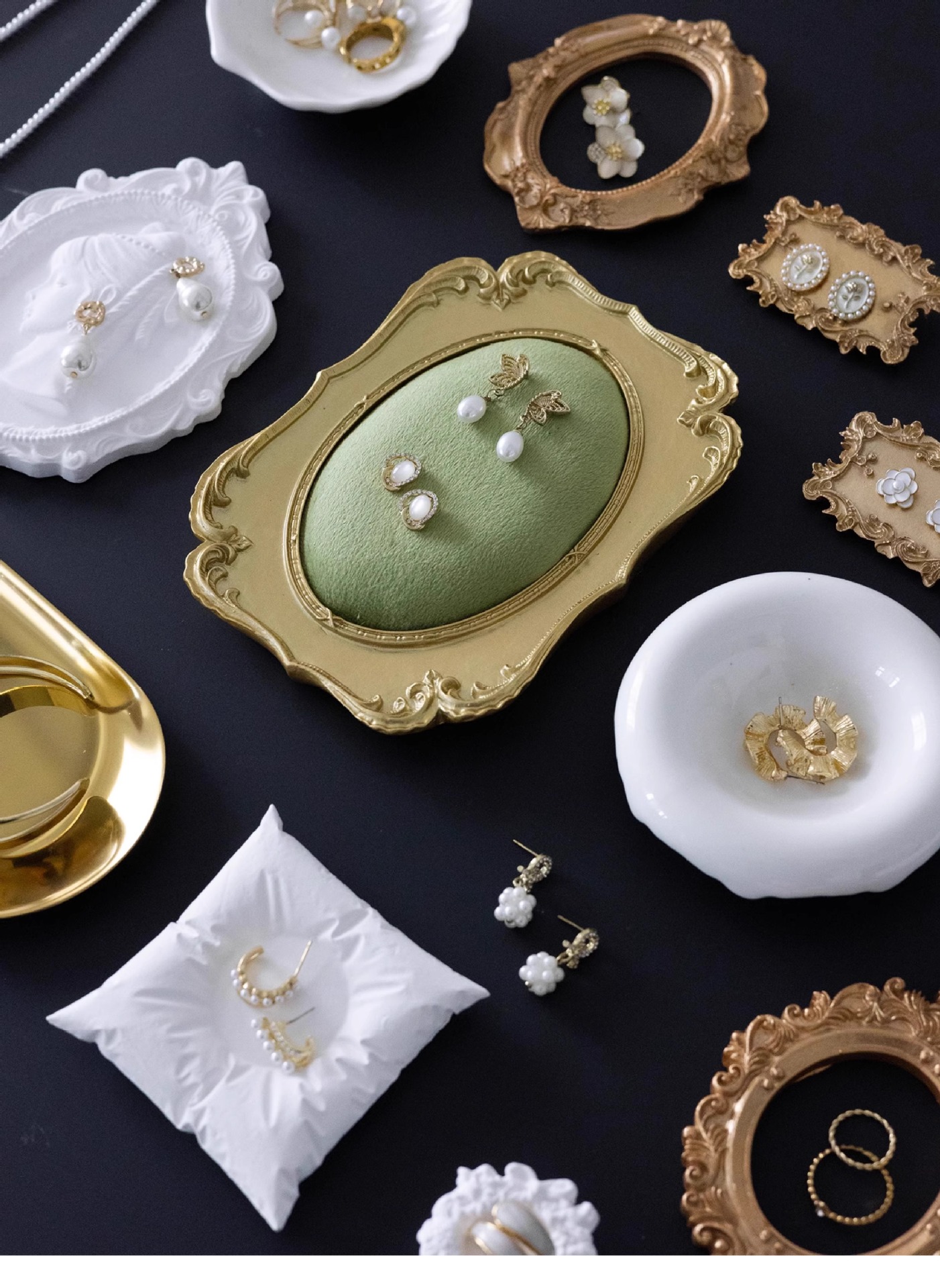 Vintage Flannel Jewelry Display Plate Earrings Ring Storage Plate Gypsum Tray Shop Counter Jewelry Photography Props