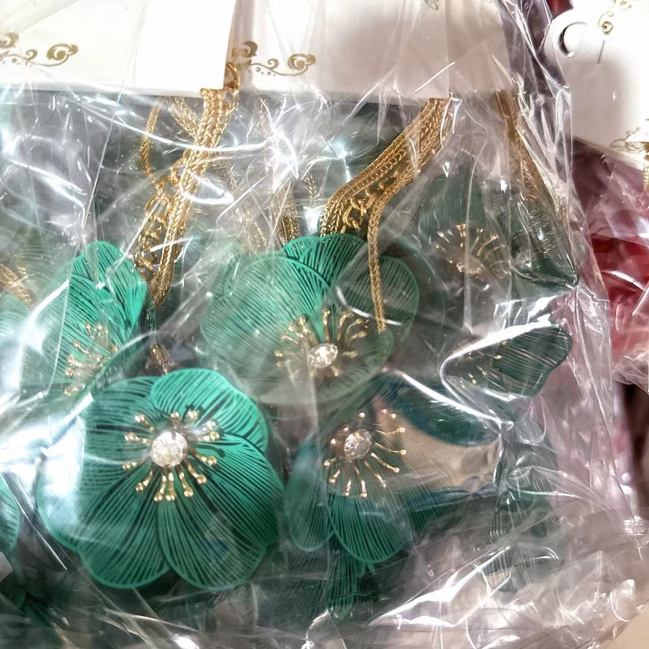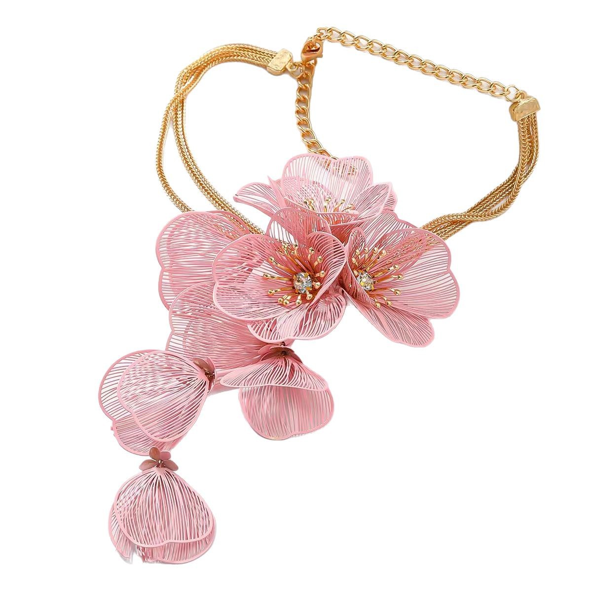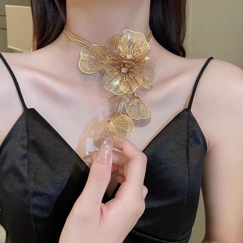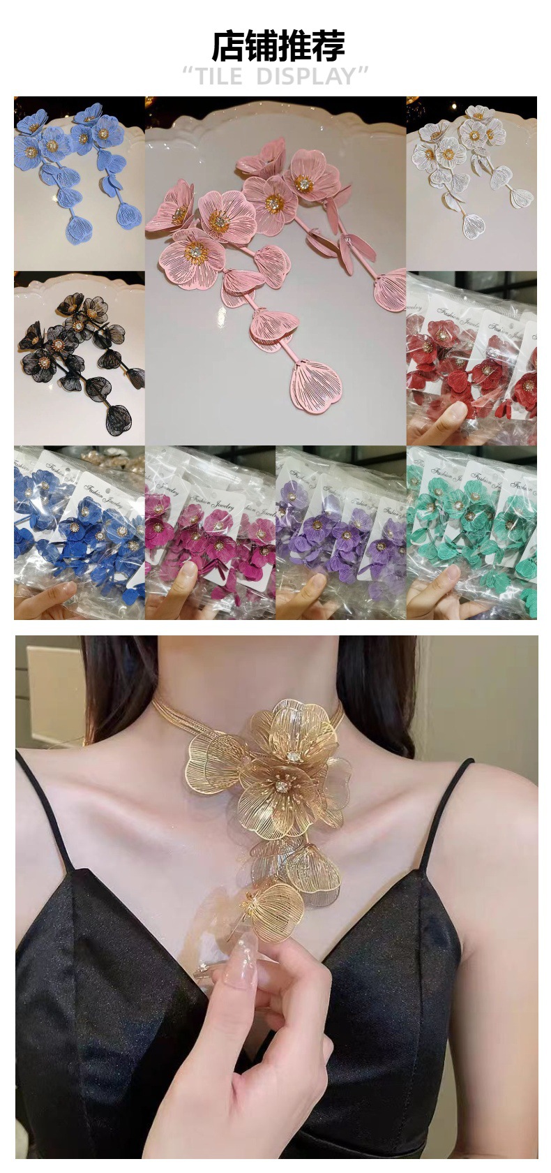 Exaggerated Heavy Industry Spray Paint Red Flower Necklace High-grade Sense Diamond Large Flower Long Banquet Tassel Necklace Bride
