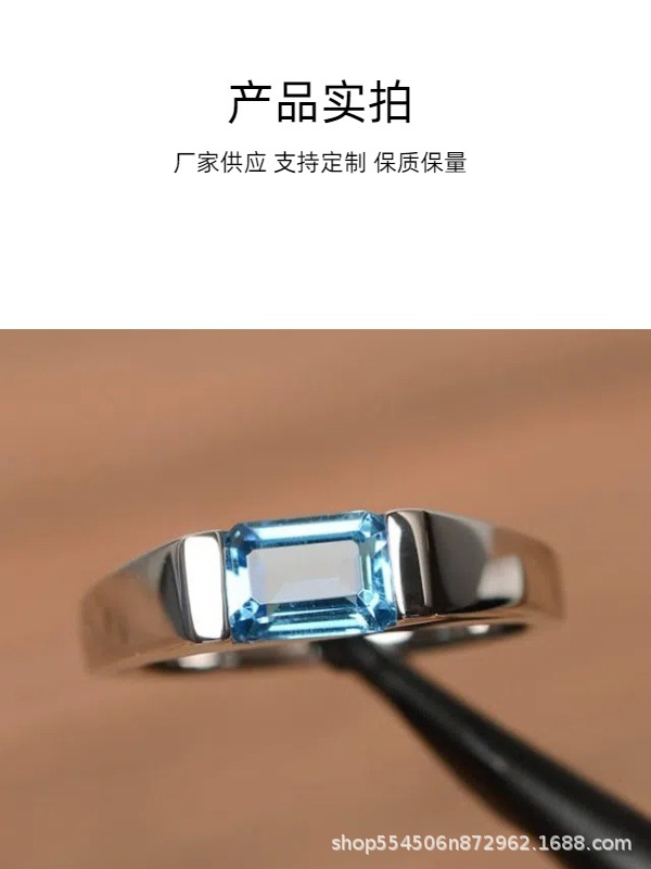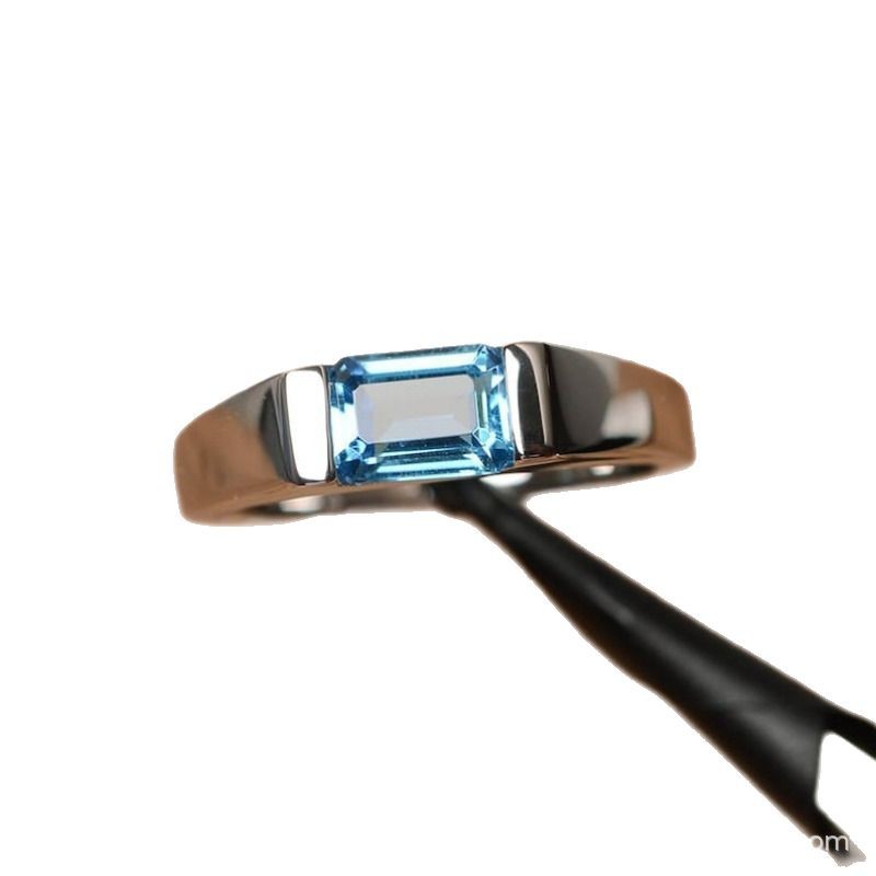 Chengge Niche Design Fashion Clear Inlaid Light Blue Rectangular Zircon Ring