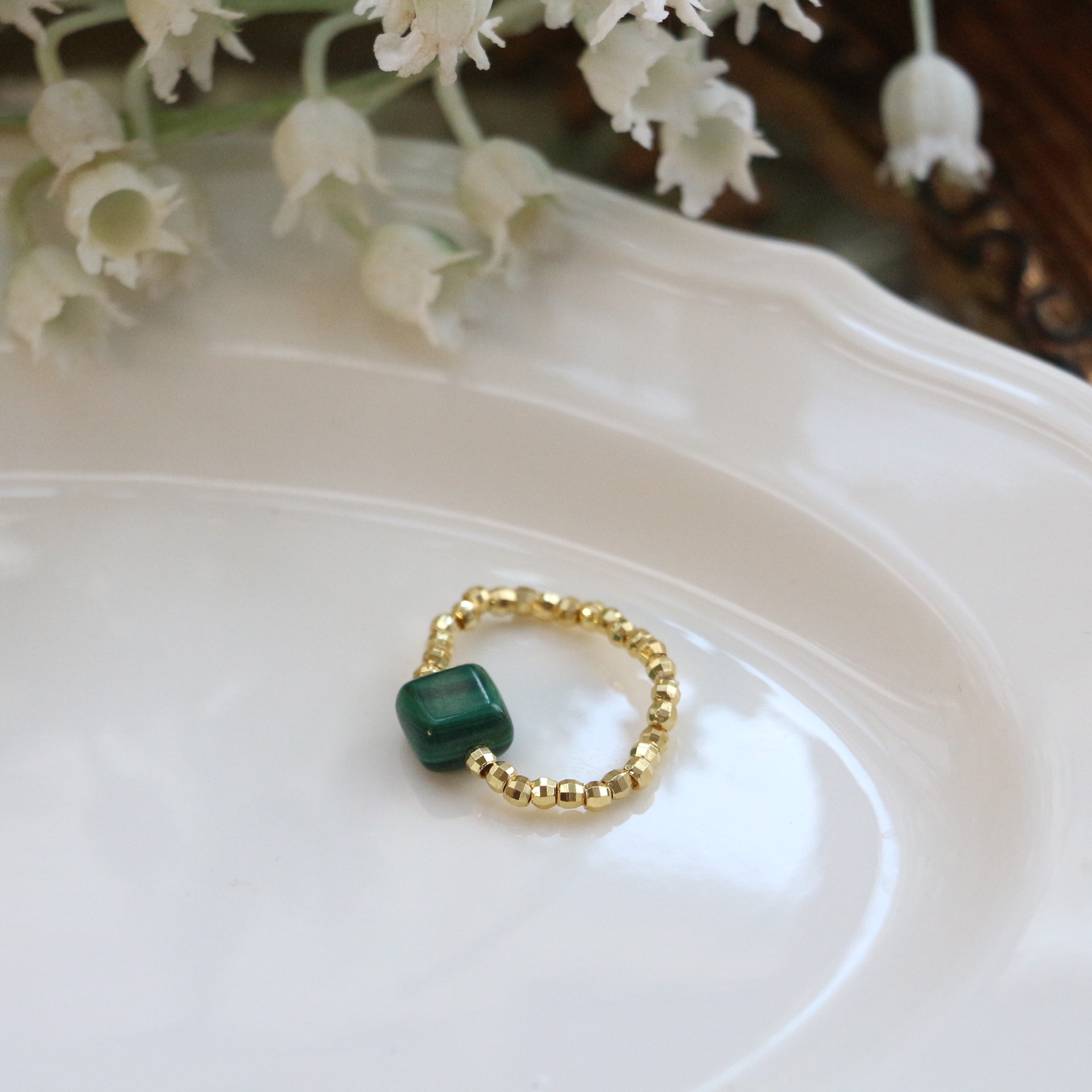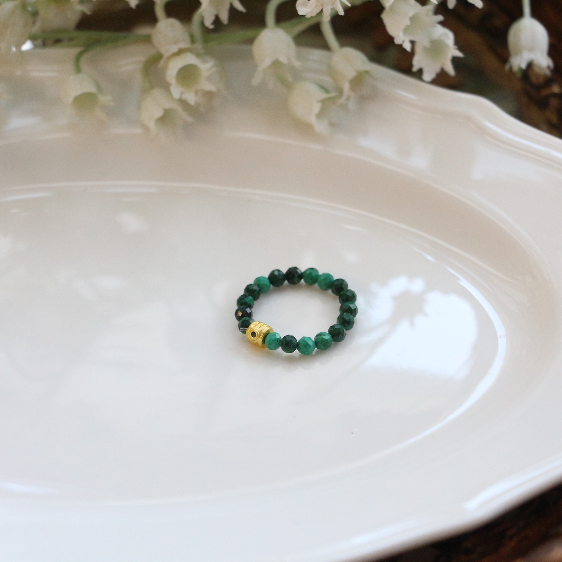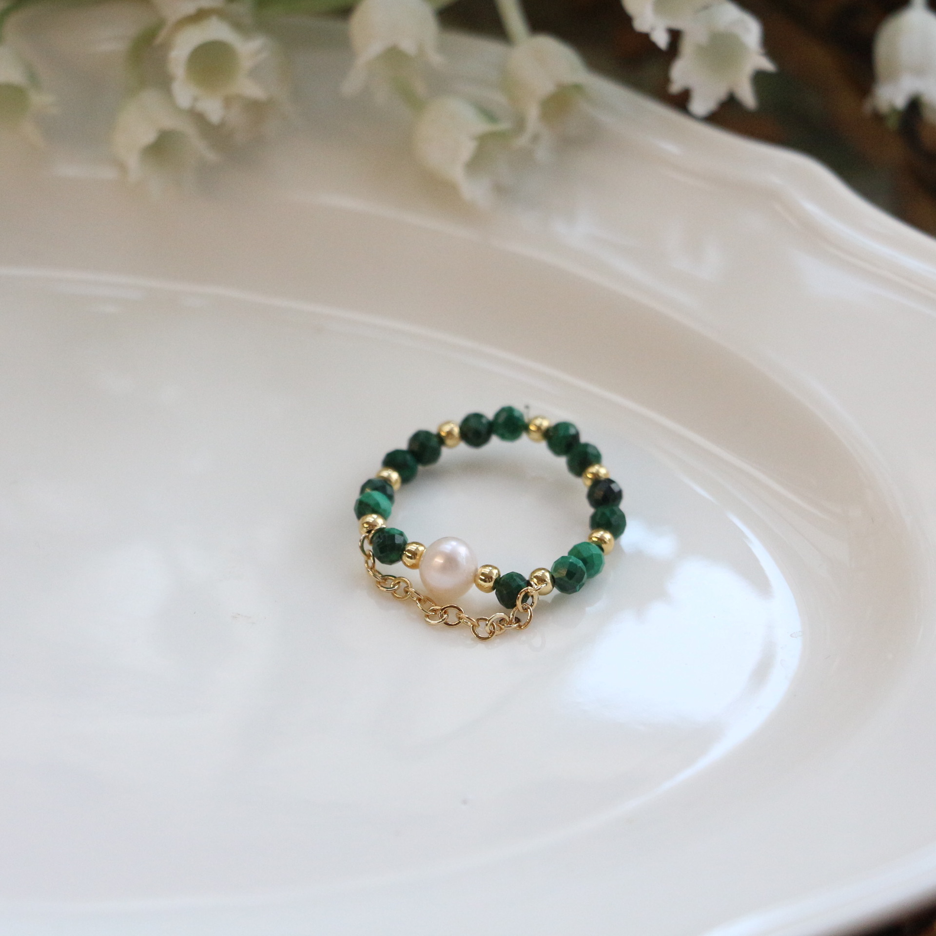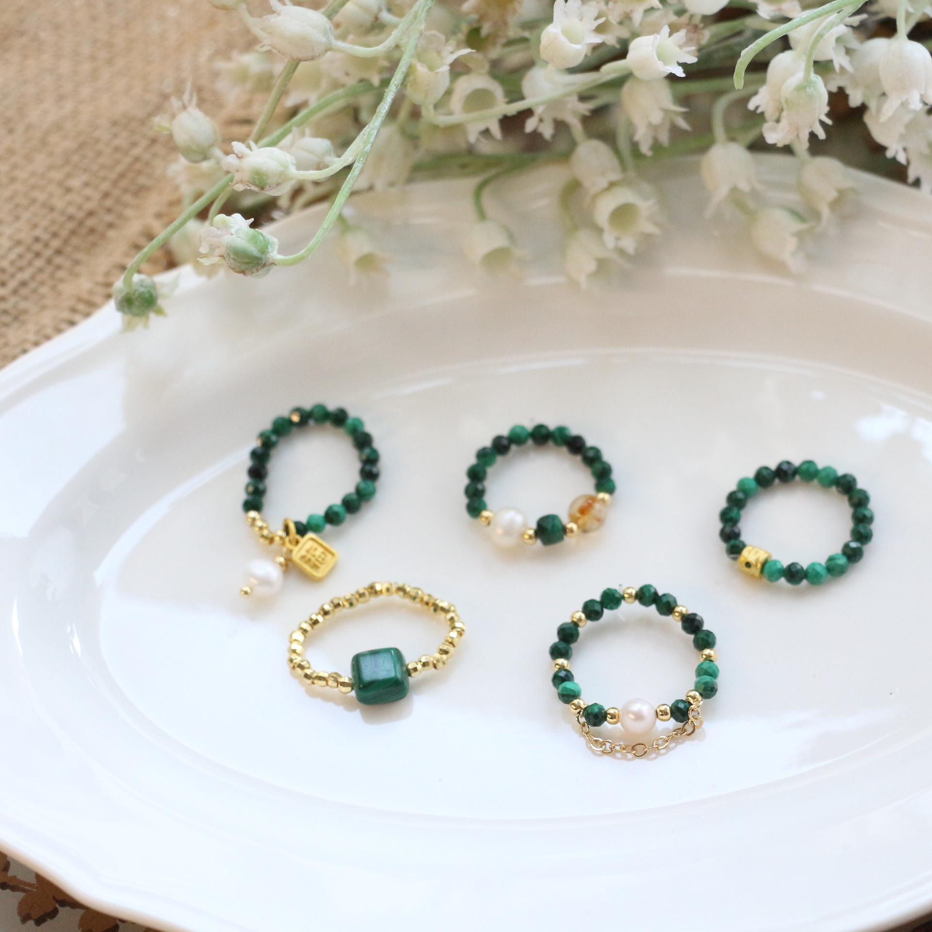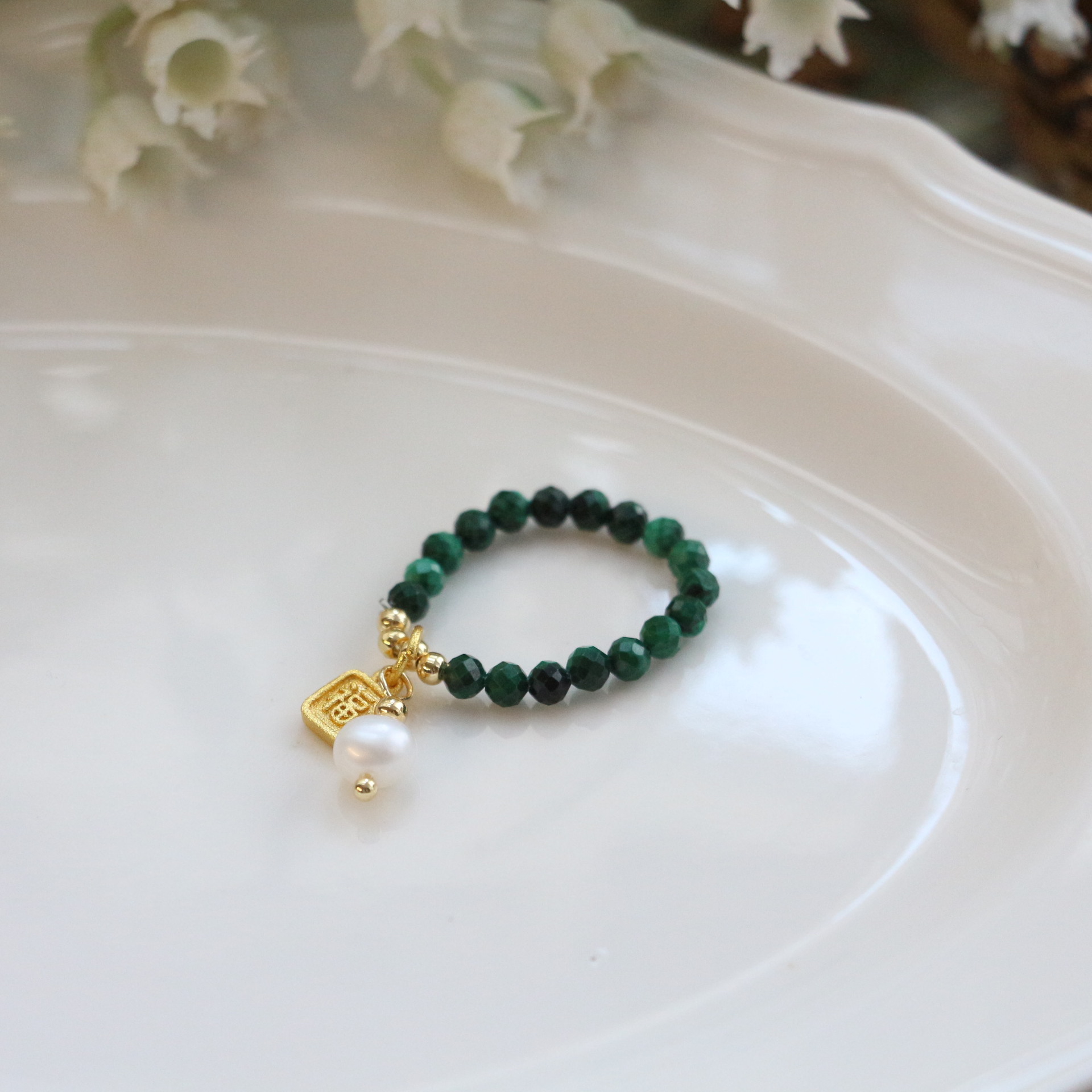 New National Tide National Style Natural Malachite Ring Elastic Adjustment Pearl Ring Ring