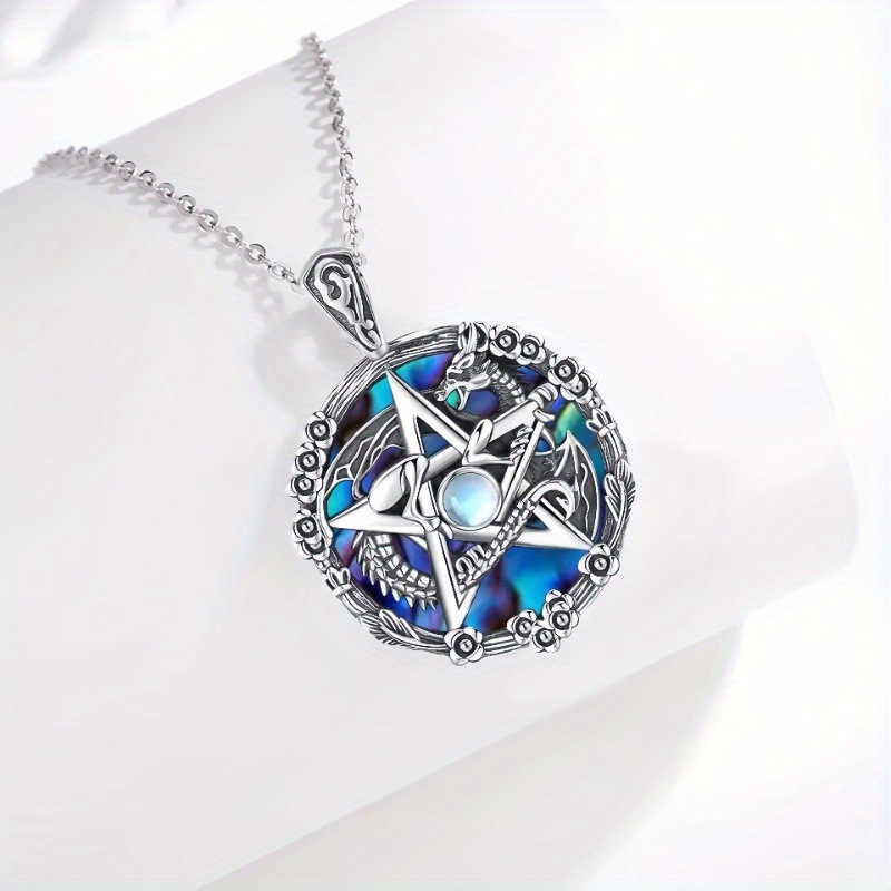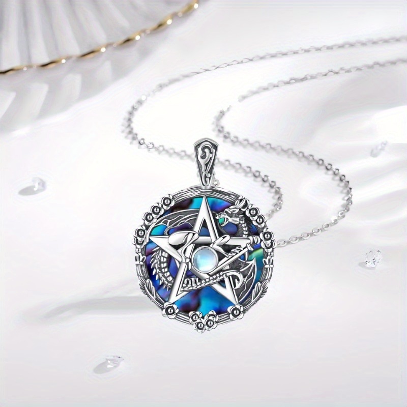 Cross-Border Vintage Abalone Shell Dragon Pentagram Necklace, Unique Cultural Symbol Pendant, Trendy and Stylish
