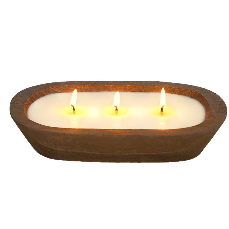 Solid Wood Aromatherapy Candle Plate Restaurant Atmosphere Lighting Fragrance Candle Tray Wooden Three-core Aromatherapy Candle Display Plate