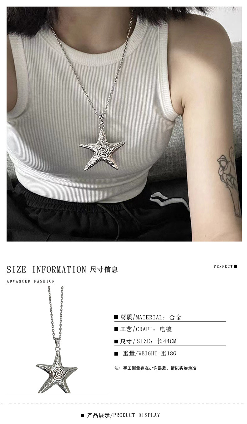 Sea Star Necklace Niche Retro Sweet Cool Spice Girl Style Sub-culture Ins Star Starfish Advanced Personality Clavicle Chain