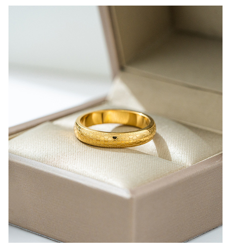 Titanium steel non-fading diamond honeycomb curved ring women's fashion all-match ancient frosted ring light luxury simple hand decoration