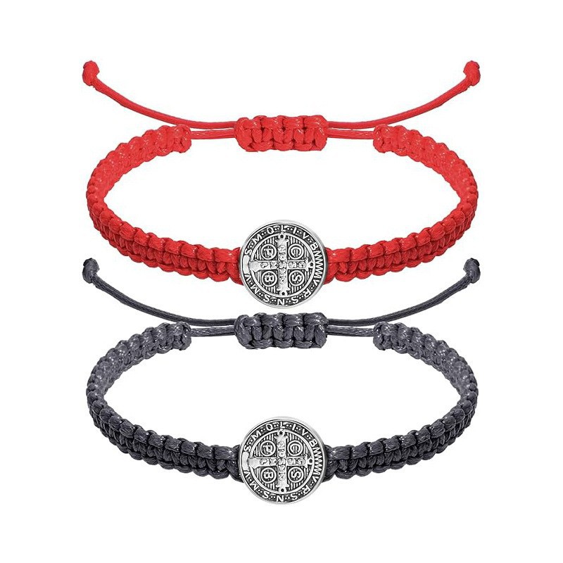 Cross-Border Hand-Woven Adjustable Wax Thread Hand Rope Cross Virgin Mary Gift Bracelet Cross-Border Jewelry