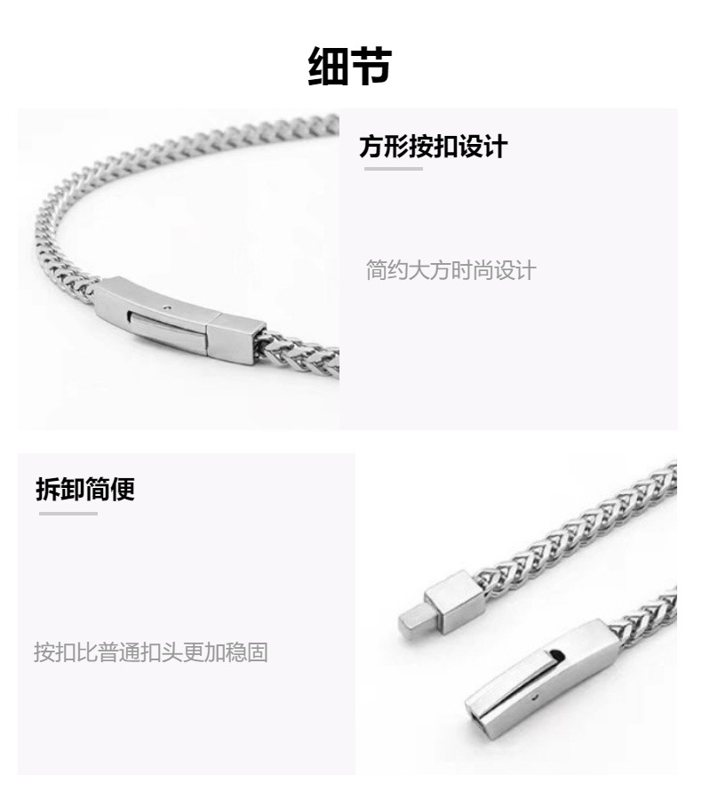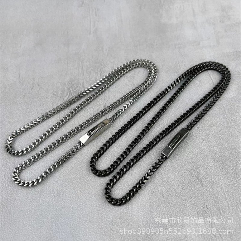 Retro Simple Square Positive and Reverse Keel Chain Titanium Steel Men's Necklace Personalized Fashion Punk Hip-Hop All-Match Ornaments