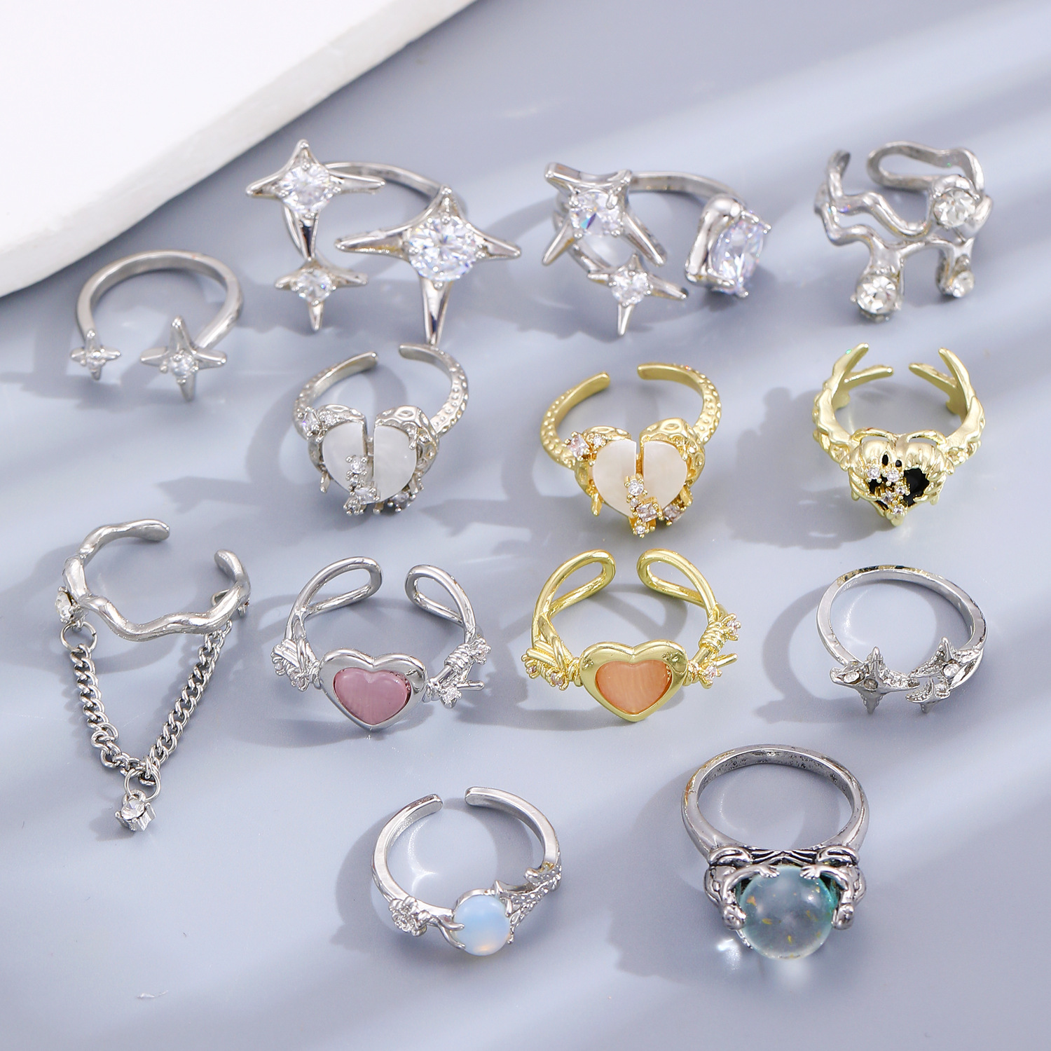 Type: Pearl ring, plain ring, zircon ring, bow ring, love ring, open ring, five-pointed star ring, sugar cube ring
