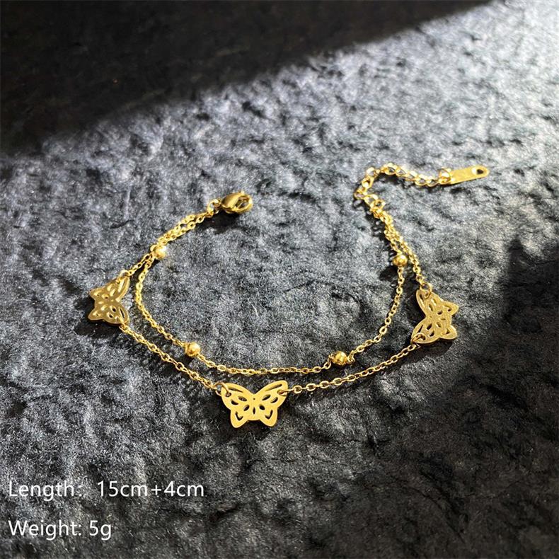 Color: Gold-hollow mini four-leaf clover double layer bracelet