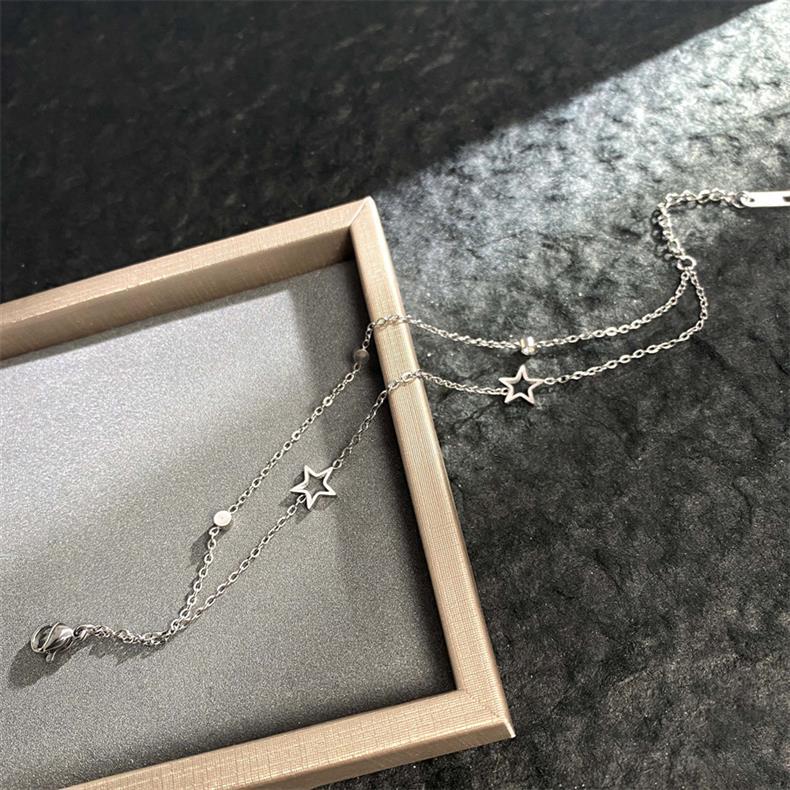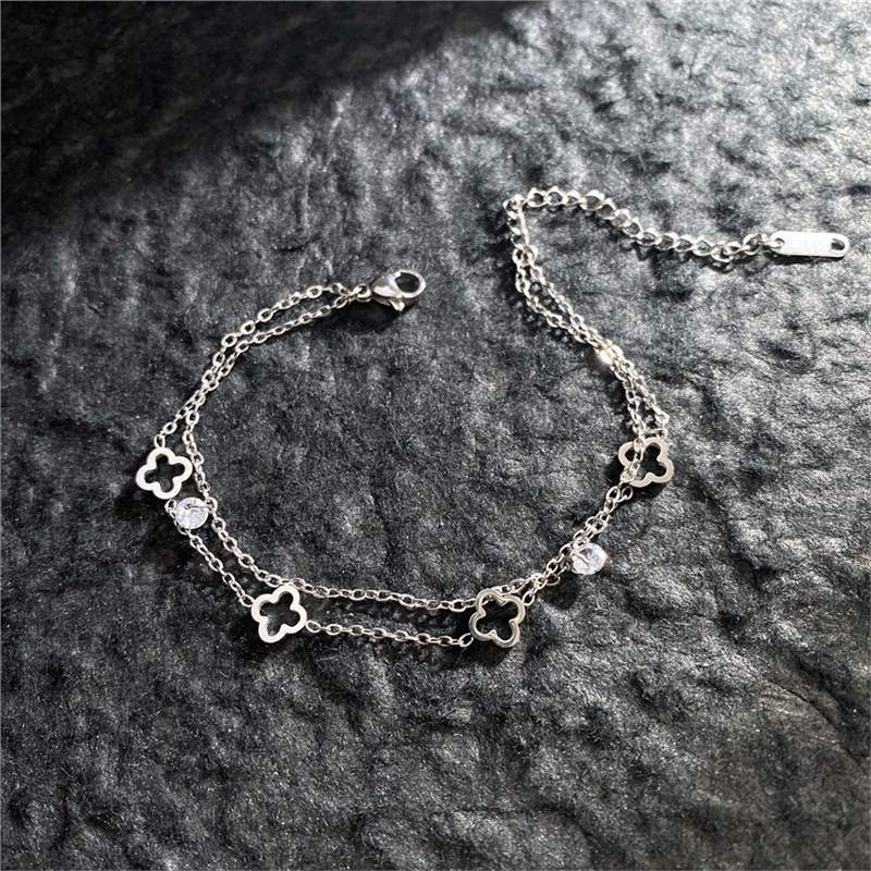 Color: Silver-hollow mini four-leaf clover double layer bracelet