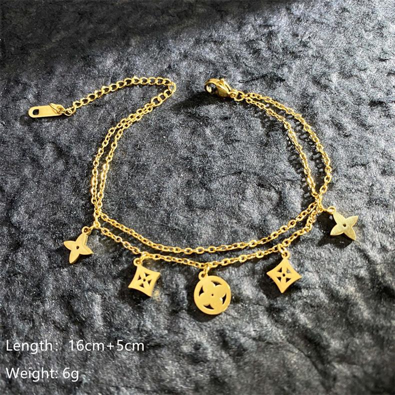 Color: Gold-small cross flower four-leaf clover double layer bracelet