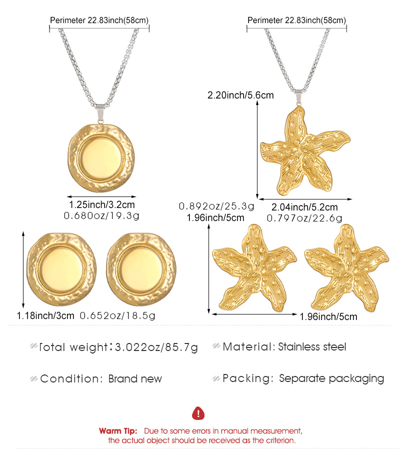 Starfish Geometry Cross-border European and American Gold Titanium Steel High-grade Pendant Necklace Light Luxury Earrings Light Luxury suit Women's Jewelry