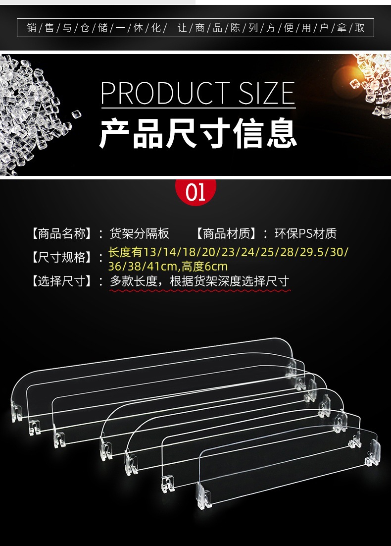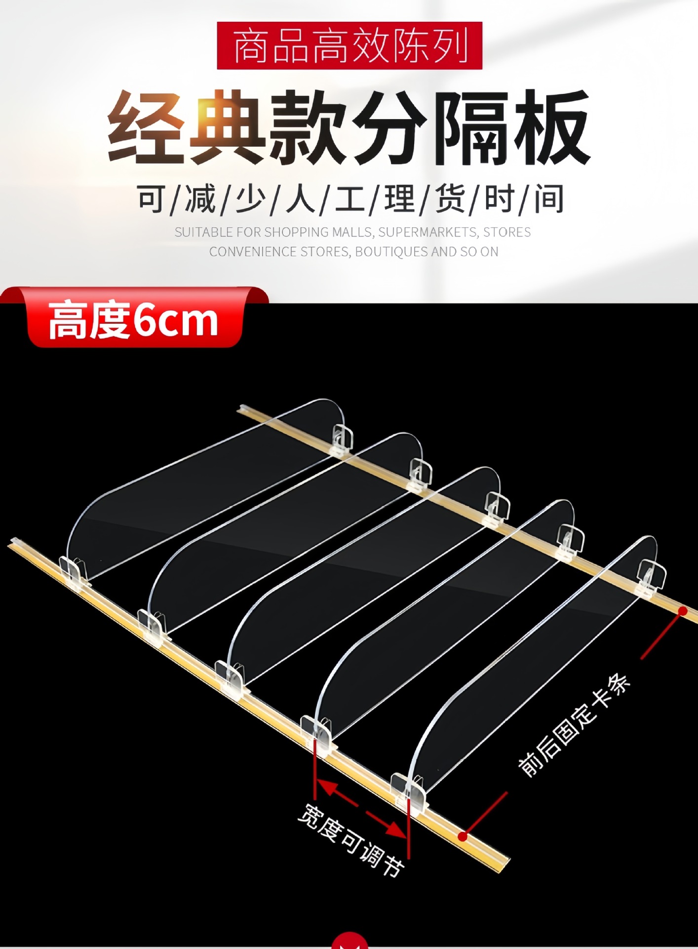 Shelf Divider Plastic Removable Adjustable Transparent Product Anti-Fall Baffle Supermarket Shelf Display Cross-Border Factory