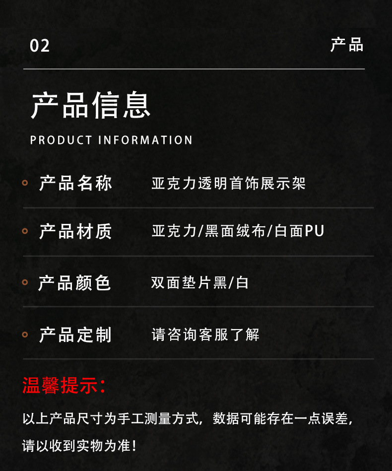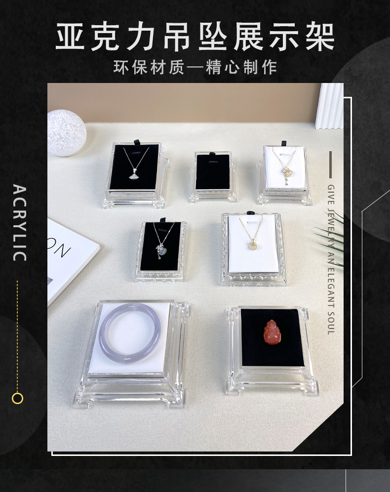 Acrylic Transparent Pendant Display Stand Tray Seat Black and White Double-Sided Necklace Jade Pendant Plexiglass Display Stand