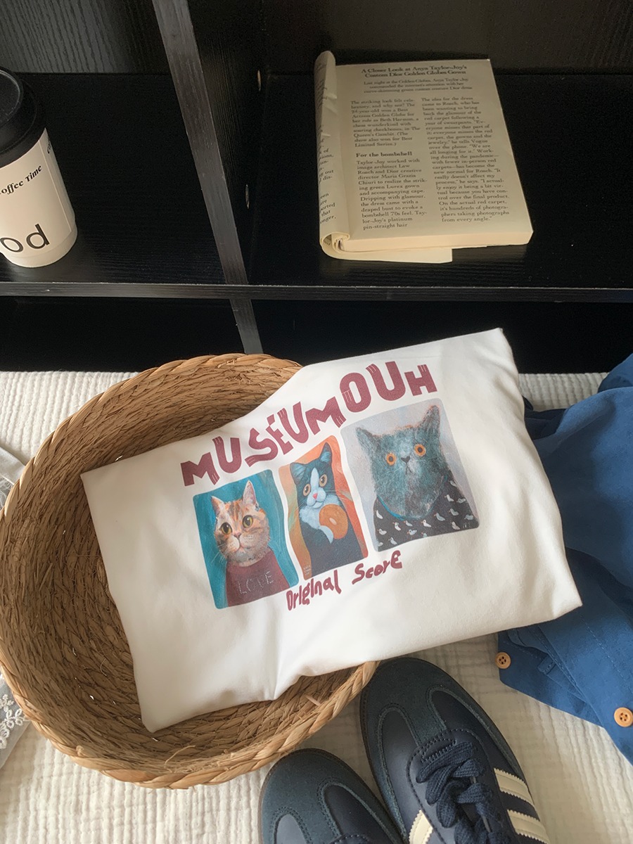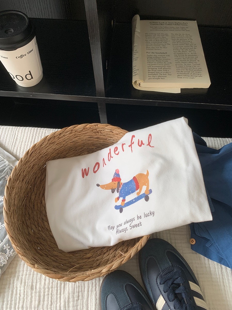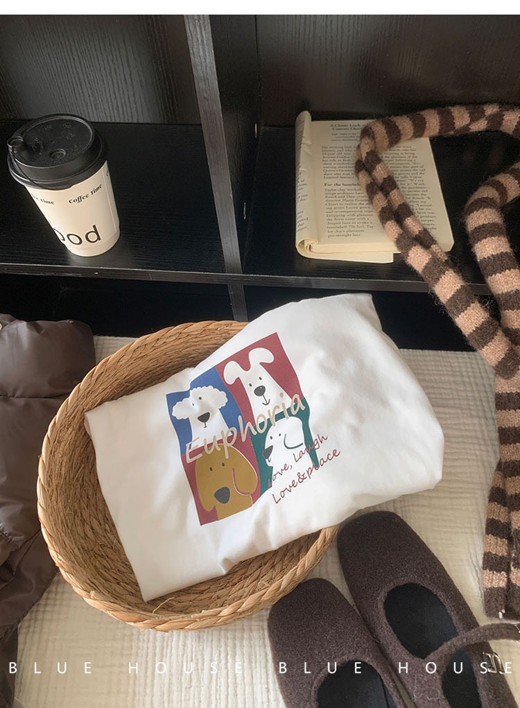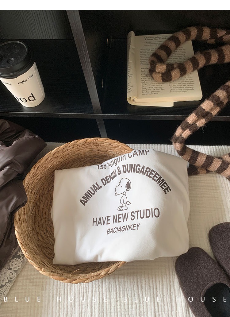 2025 New Long-sleeved T-shirt Women's Ins Sanding Cartoon Print Autumn and Winter Inner Cotton Base Shirt White Top Trendy