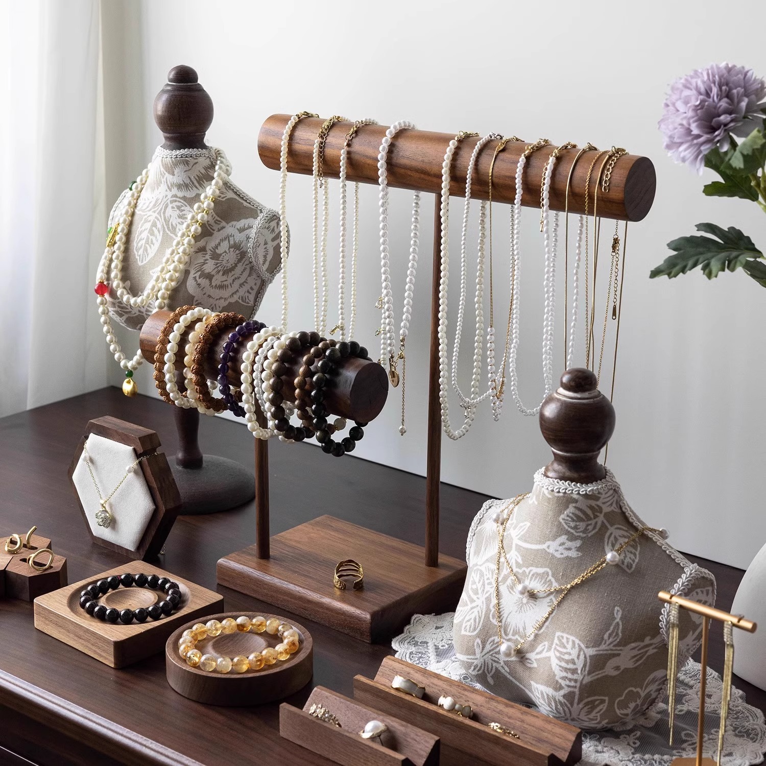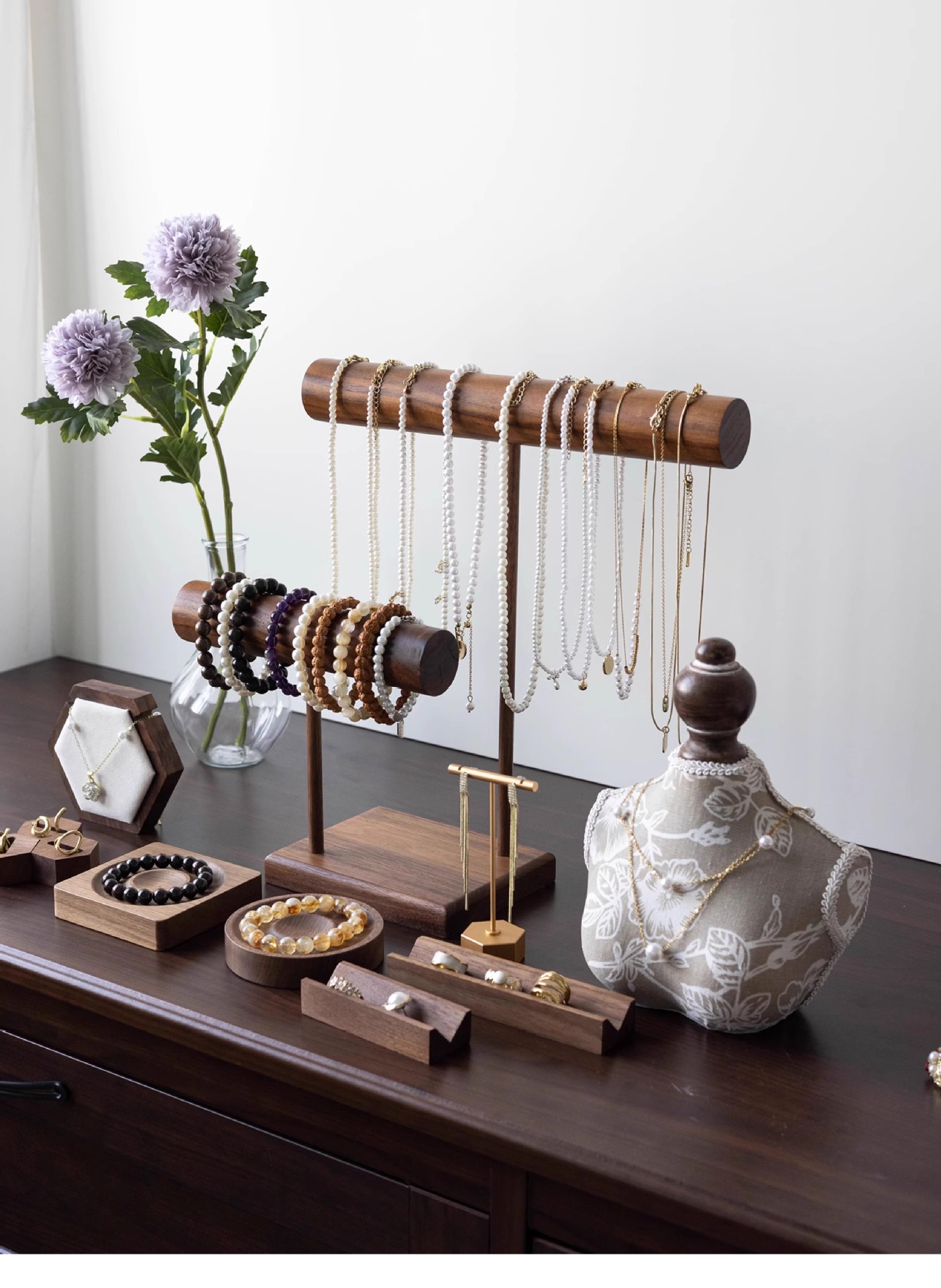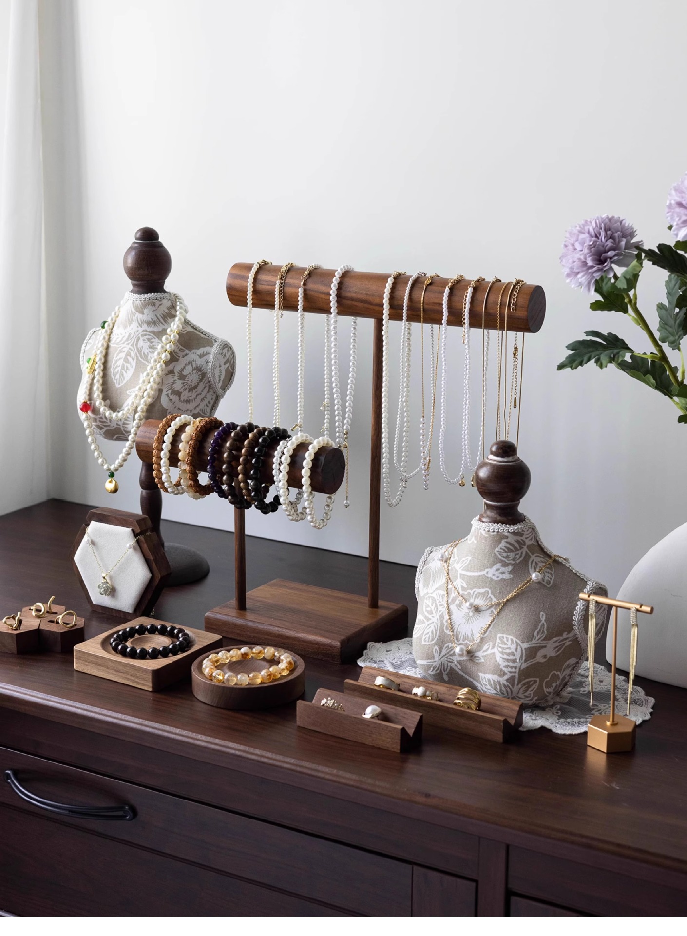 Korean-style walnut solid wood jewelry display rack portrait neck necklace hanger display jewelry store window counter ornaments