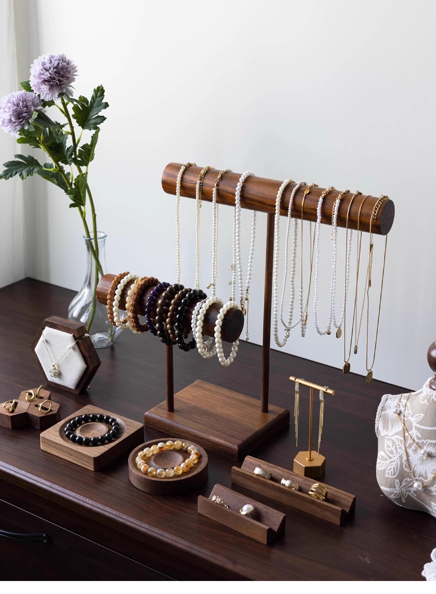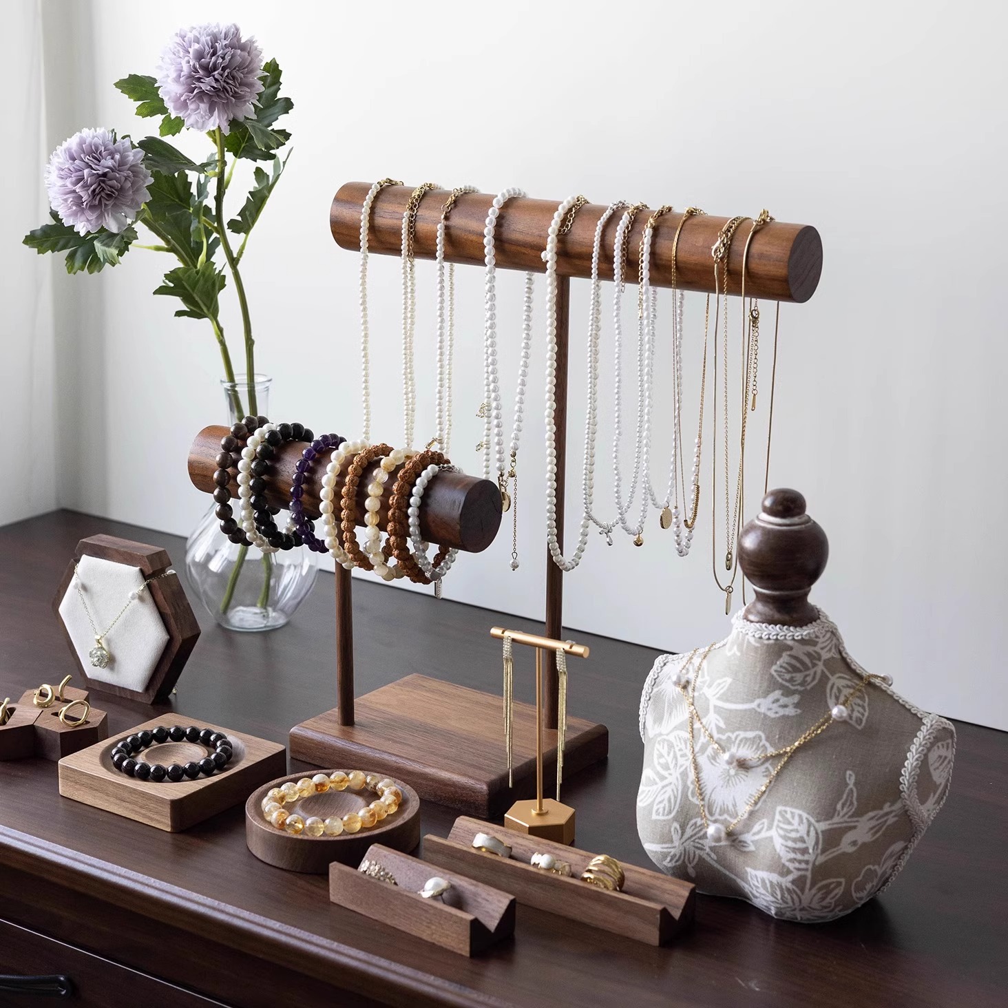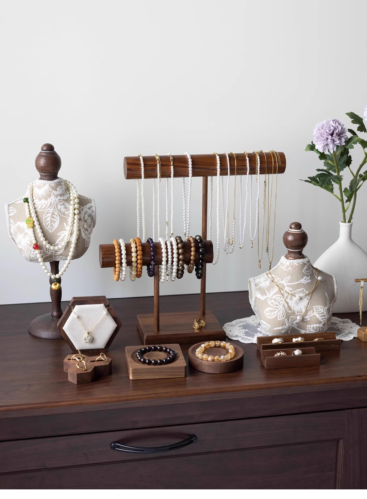 Korean-style walnut solid wood jewelry display rack portrait neck necklace hanger display jewelry store window counter ornaments