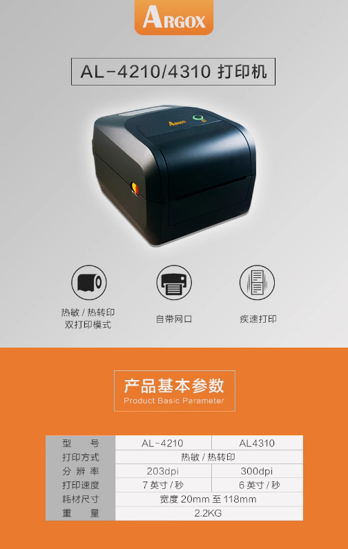 Argox standing image AL-4210/4310 barcode printer adhesive jewelry label washing mark clothing tag