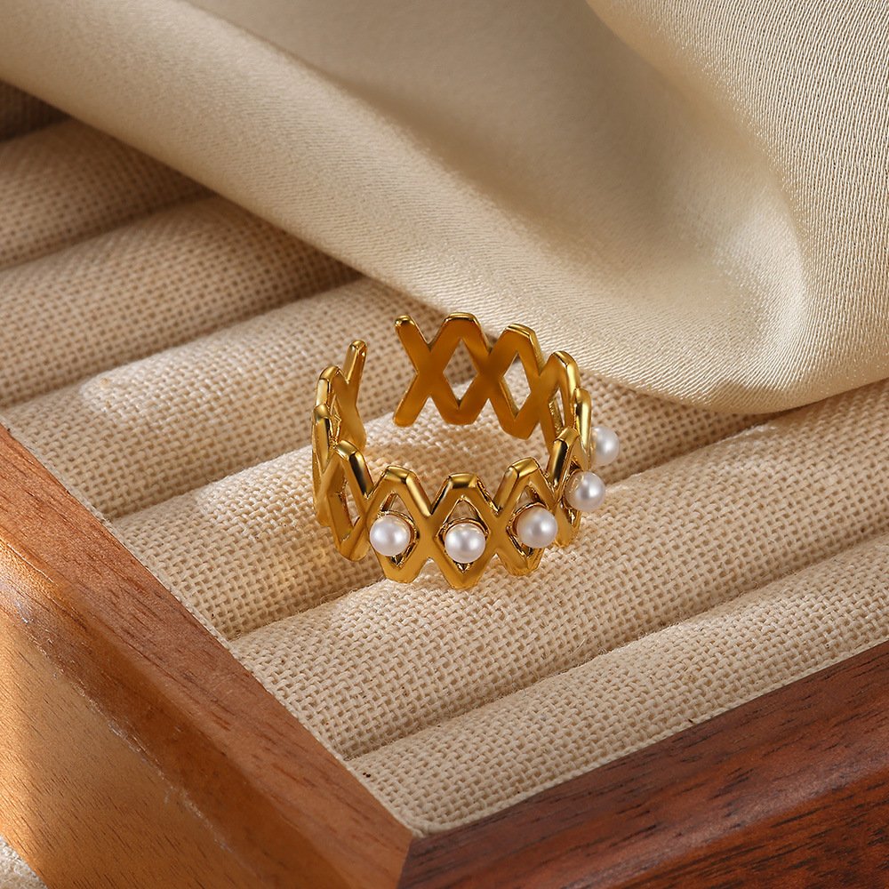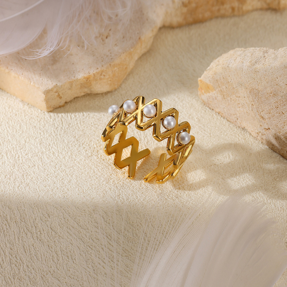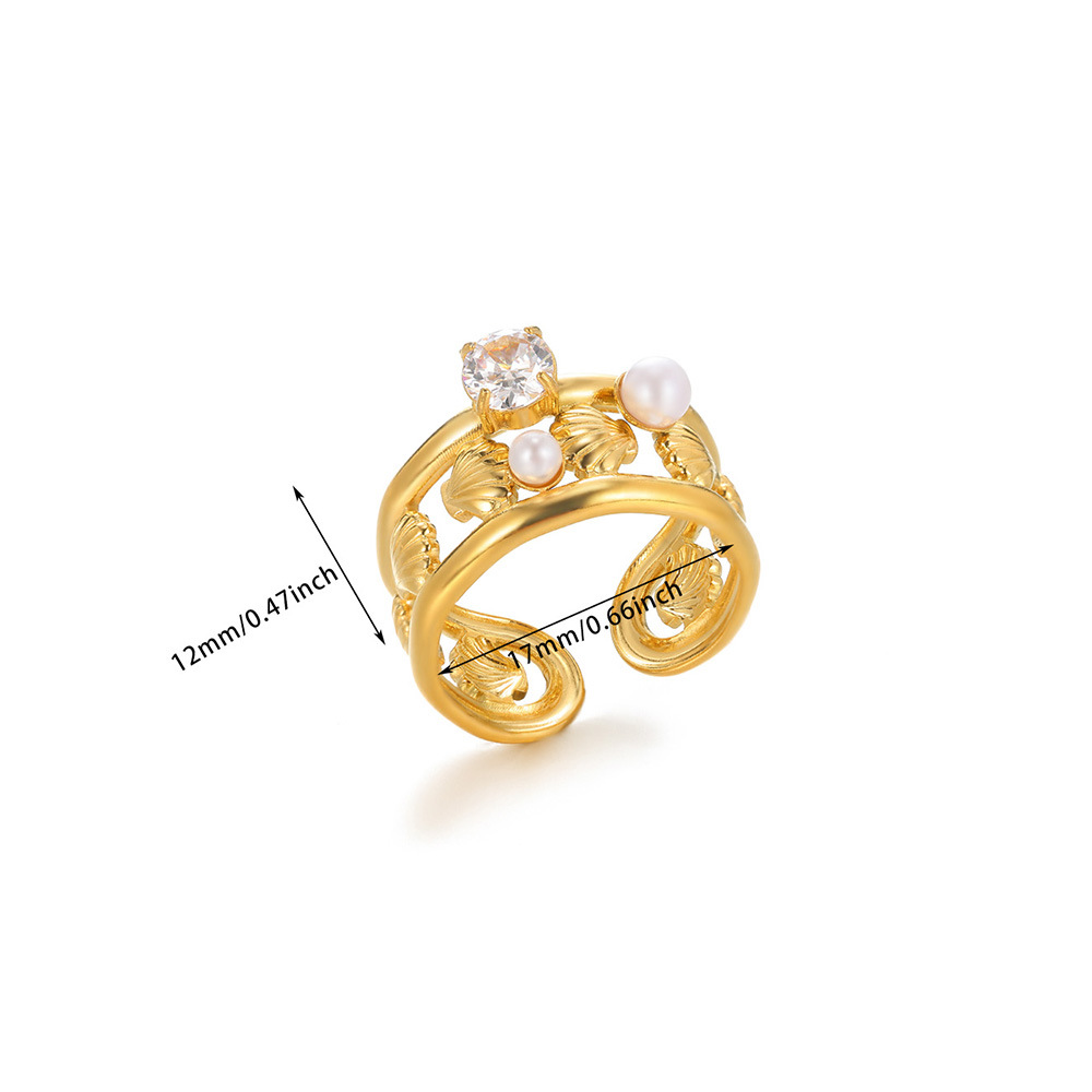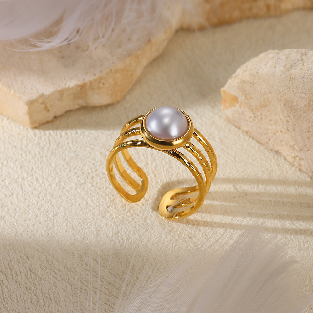 European and American Cross-border Titanium Steel Ring Retro Light Luxury Pearl Golden Multi-layer Line Design Sense Niche All-match Ring for Women