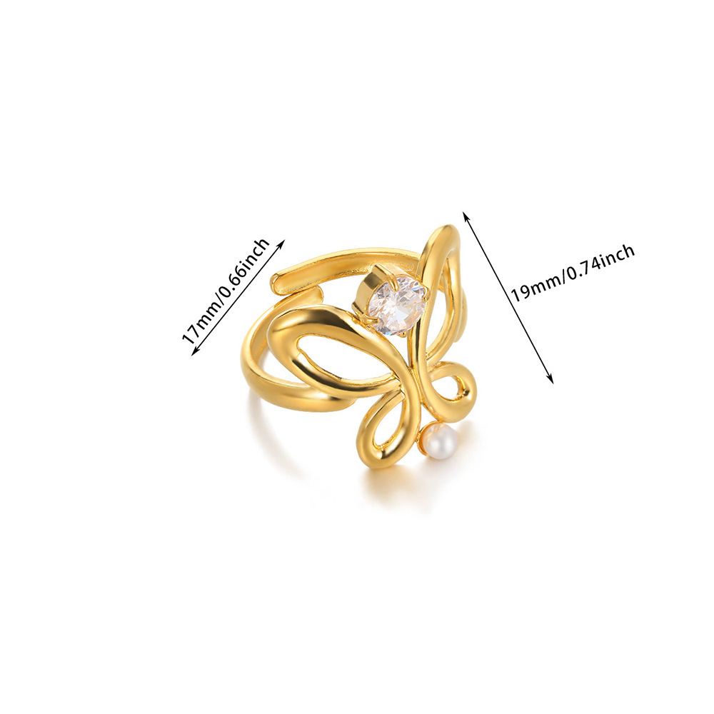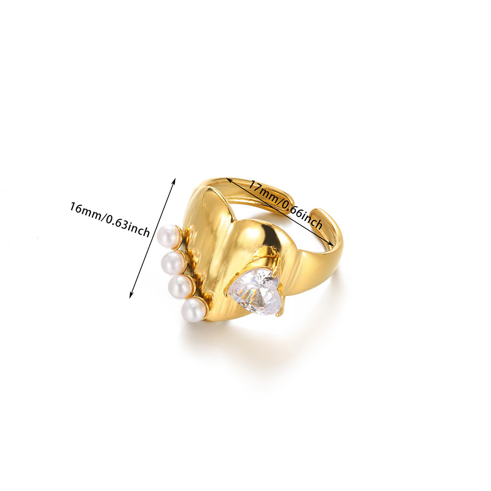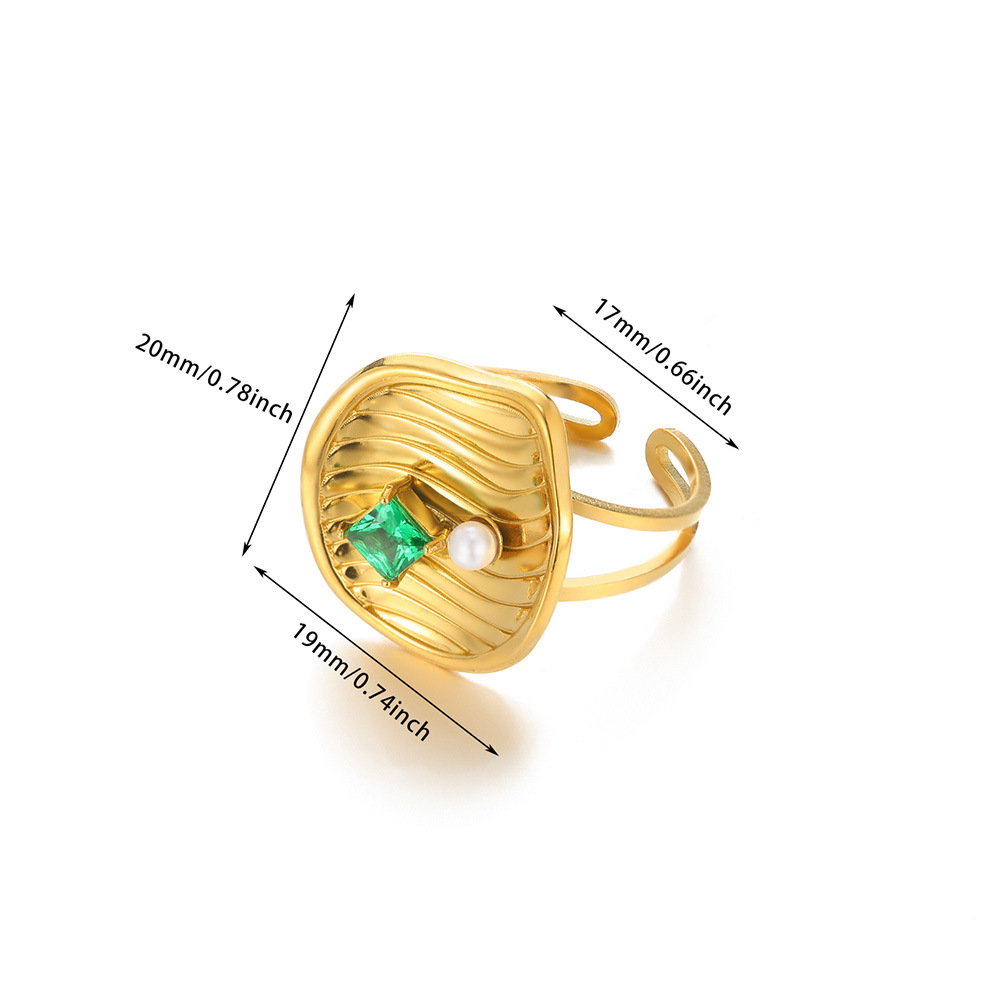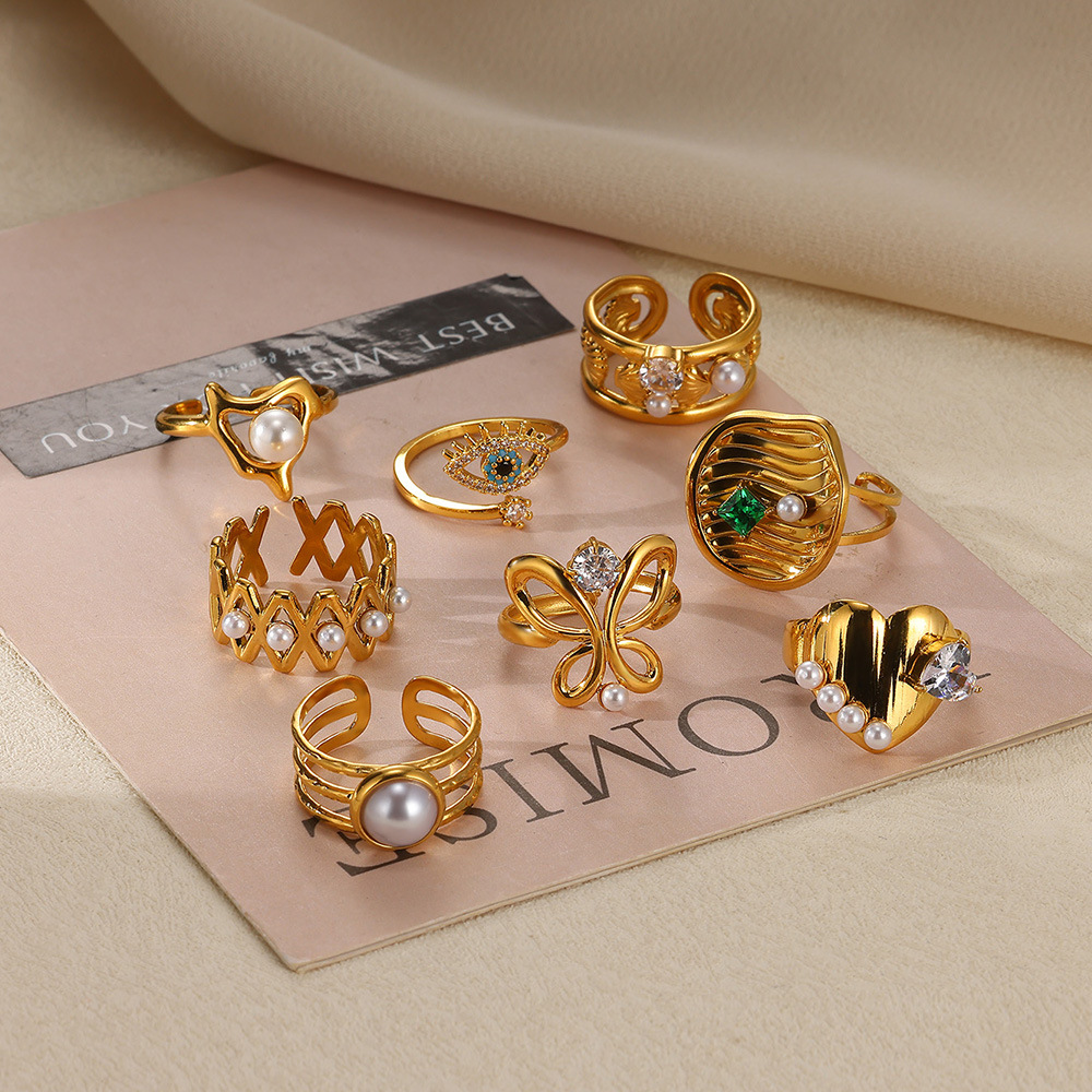 European and American Cross-border Titanium Steel Ring Retro Light Luxury Pearl Golden Multi-layer Line Design Sense Niche All-match Ring for Women