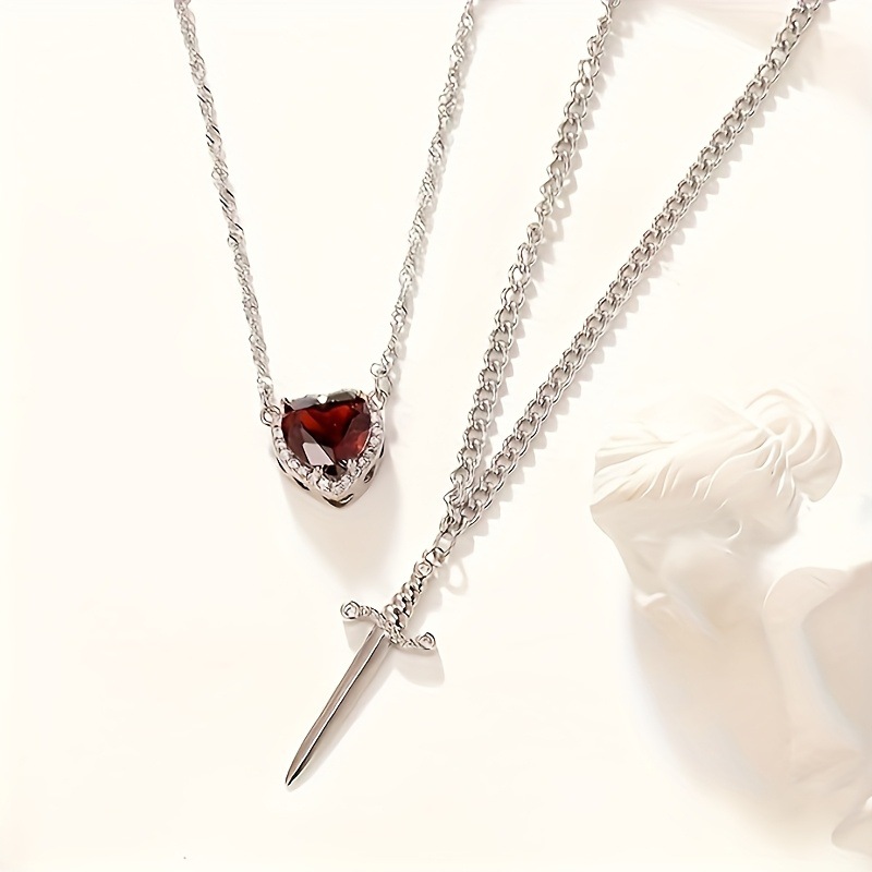 (Environmental protection) new creative one-shot heart lovers pendant suit love dagger diamond chain necklace