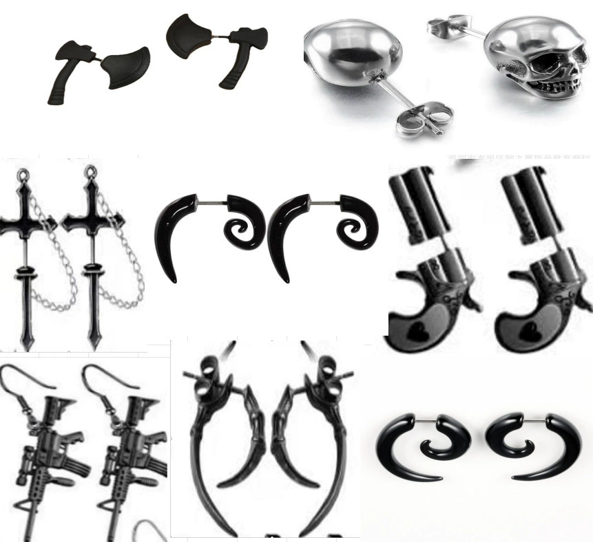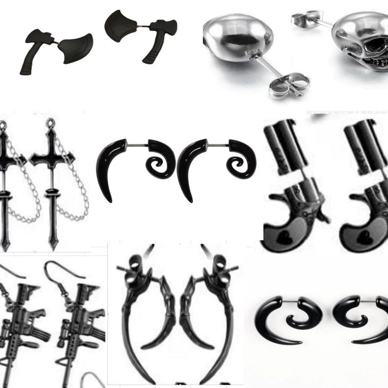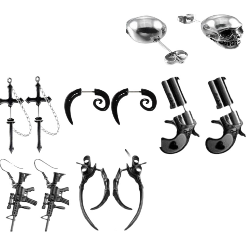 Sku-1628782 Set Black 8 Pairs of Alloy Men's Earrings Ax Eagle Claw Skull Gun Earrings