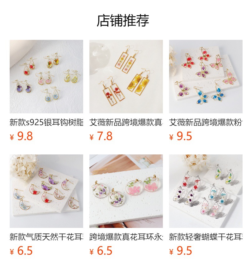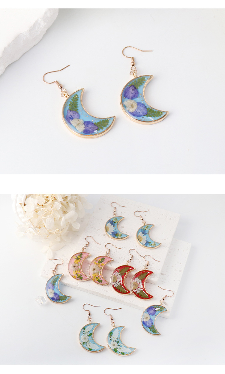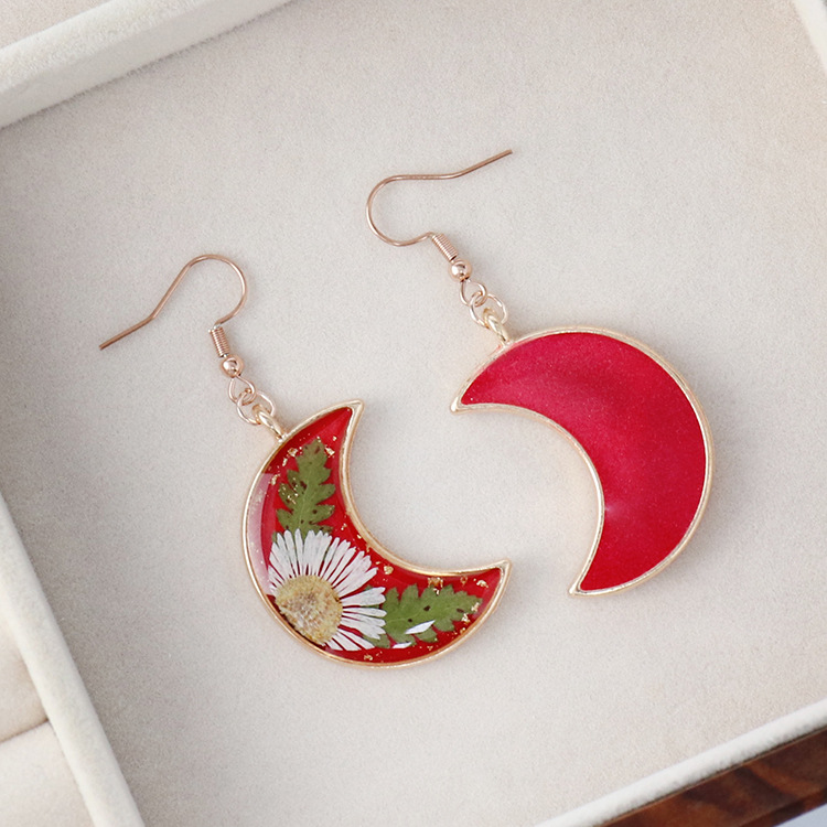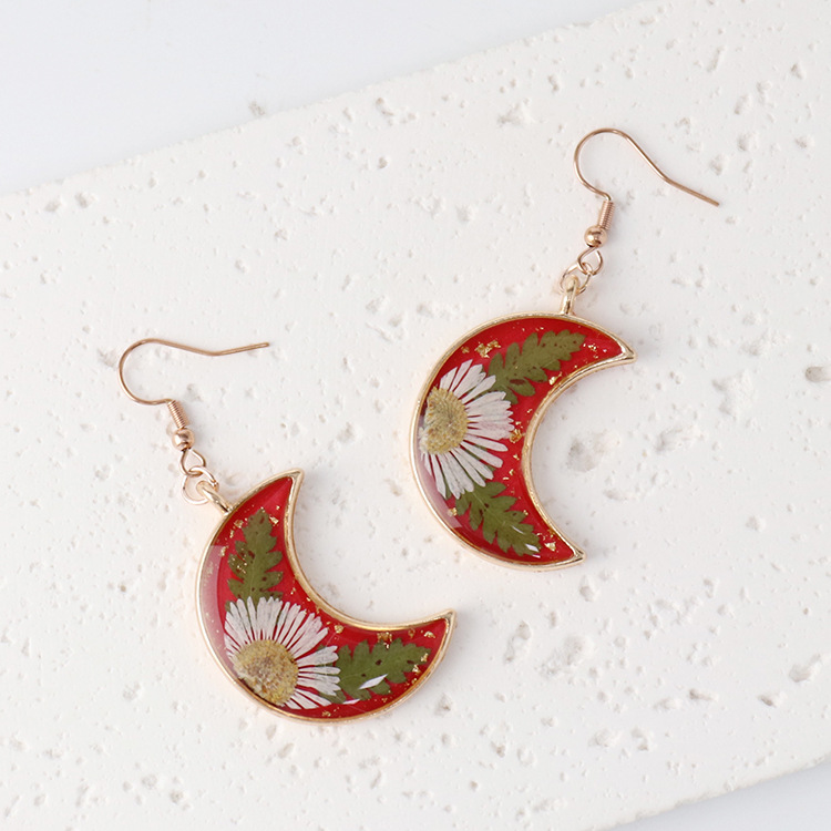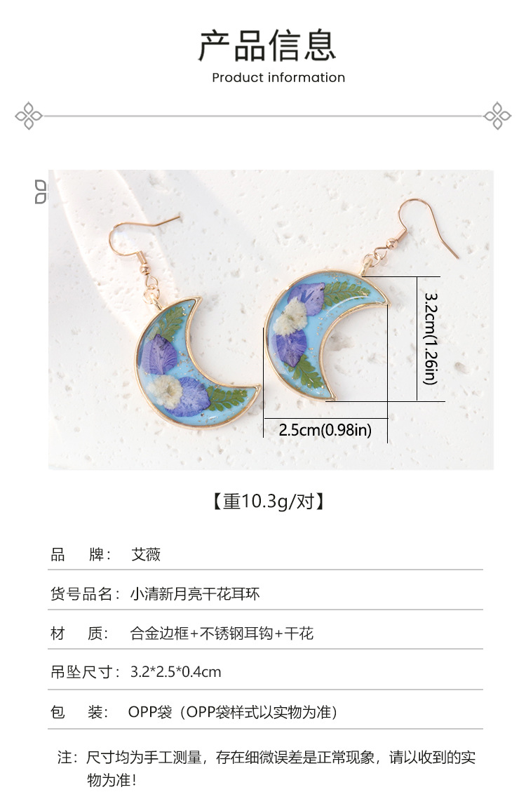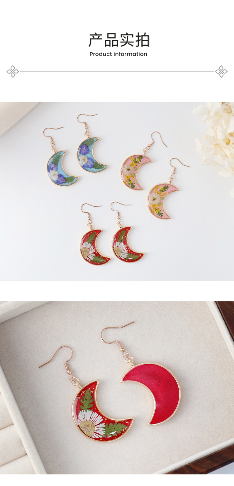 Cross-border Moon Natural Real Flower Handmade Earrings Dropping Glue Resin Creative Earrings Earrings Fresh and Beautiful Jewelry Gift