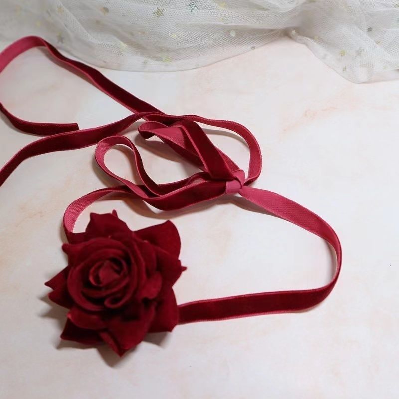 zoozmomo Red Rose Flower Lace-up Necklace Women's Sexy Elegant Vintage Strap Adjustable Collar Collar Chain