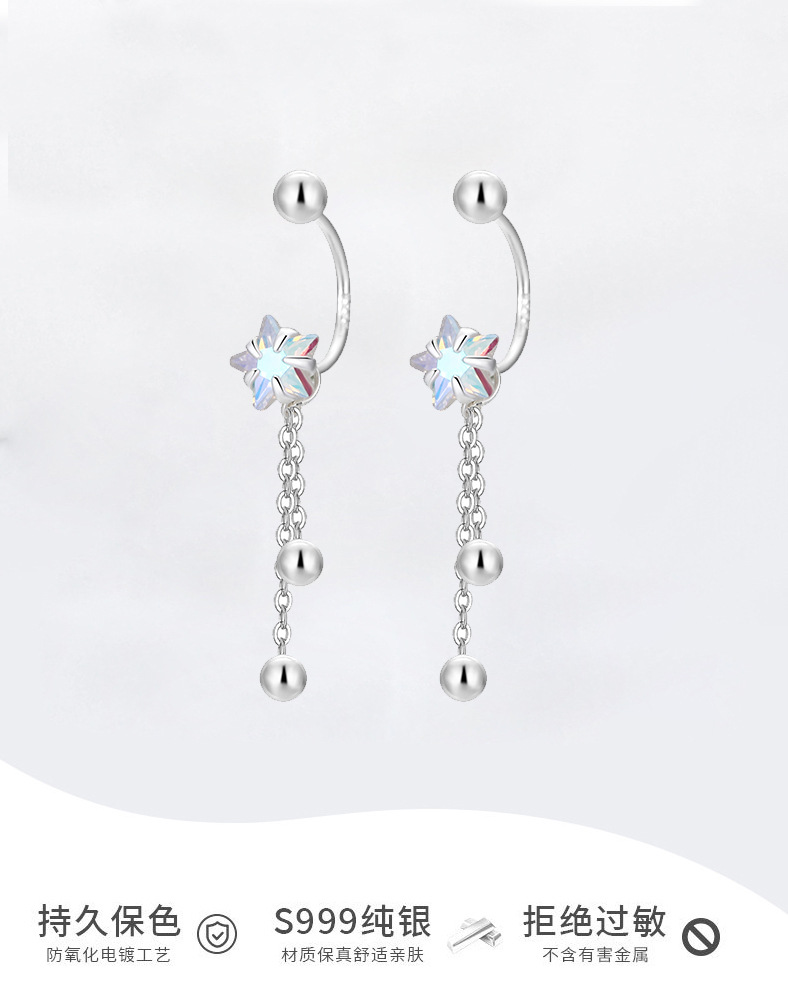S999 Sterling Silver Foot Silver Screw Buckle Star Tassel Ear Nail Light Luxury Earrings Sleeping Free Pick Ear Holes Earrings
