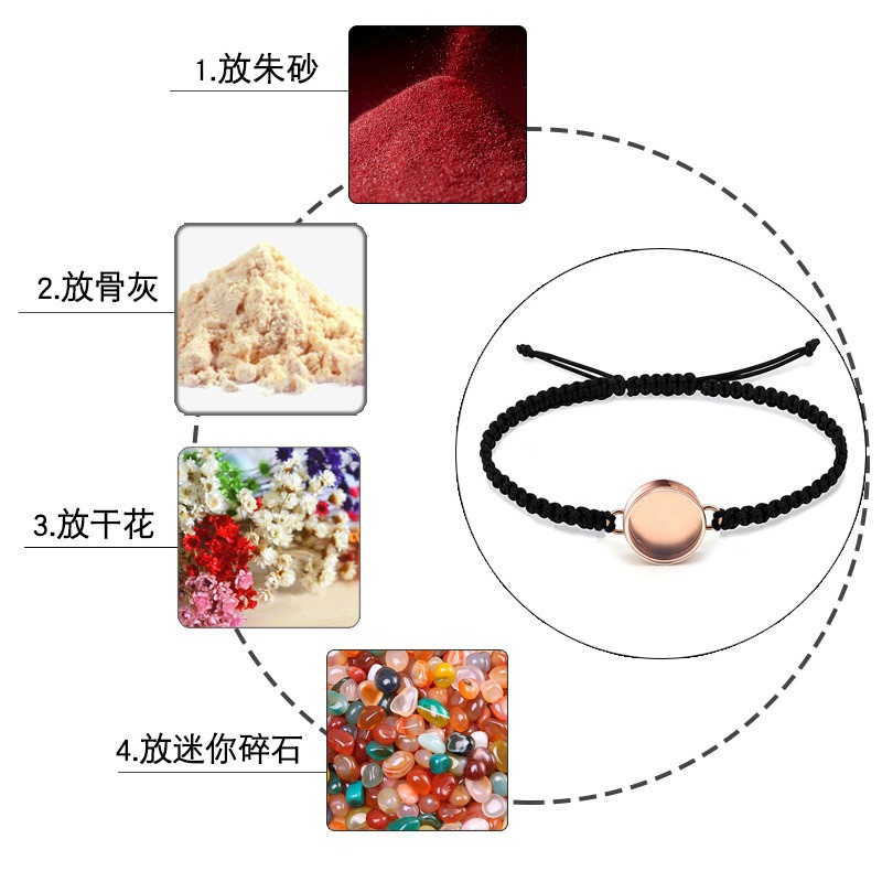Features: Mini stainless steel cinnabar bracelet thread can be opened to hold cinnabar fetal hair gawu box bracelet braided red rope bracelet