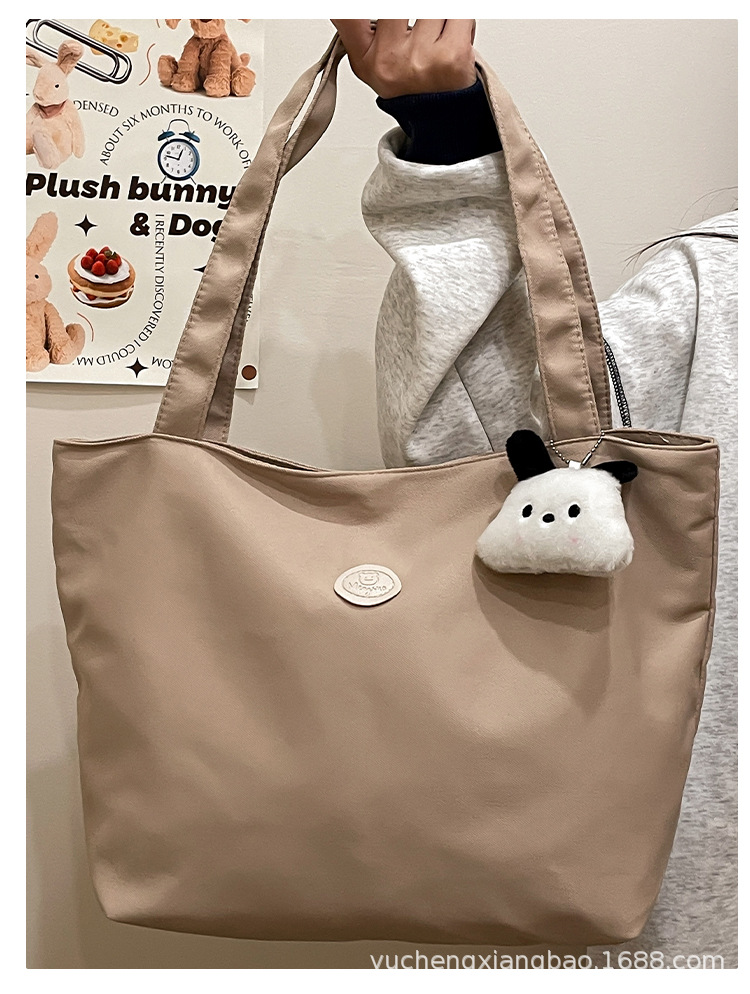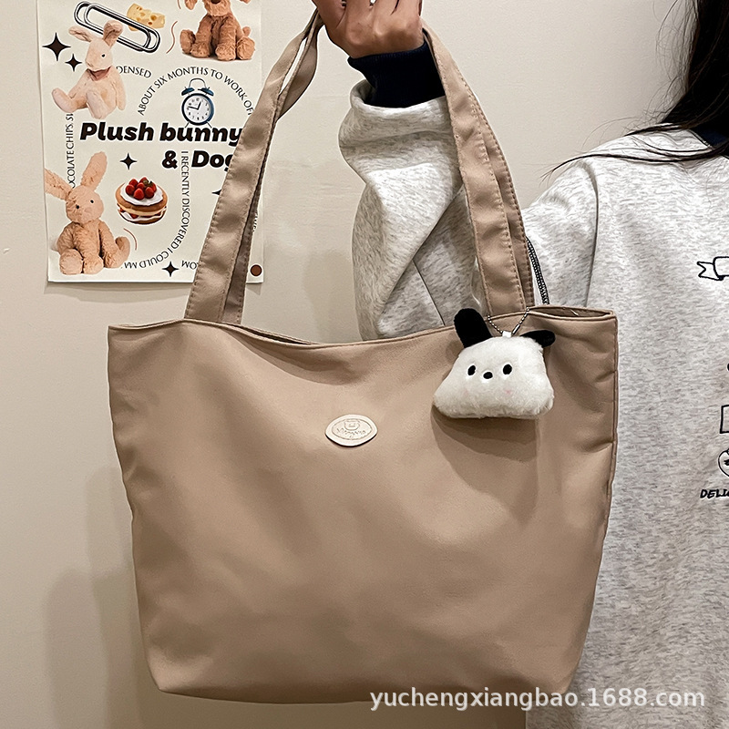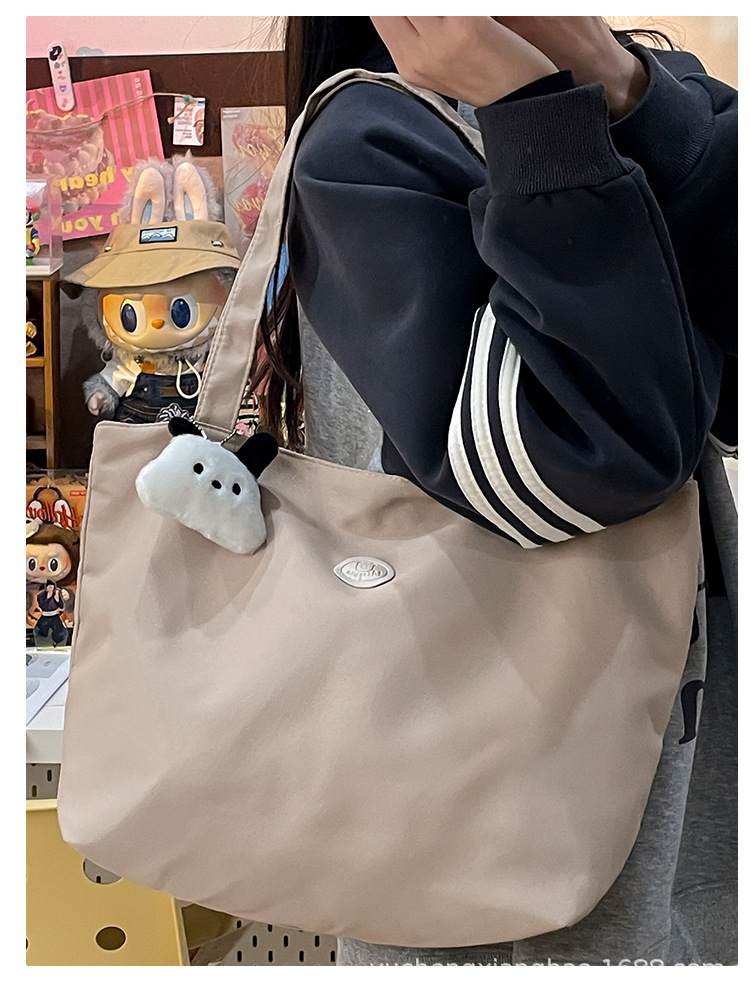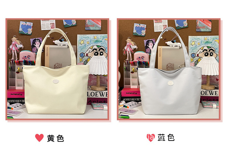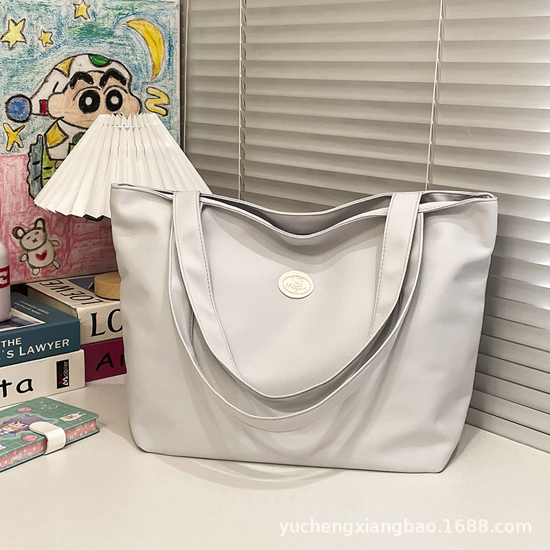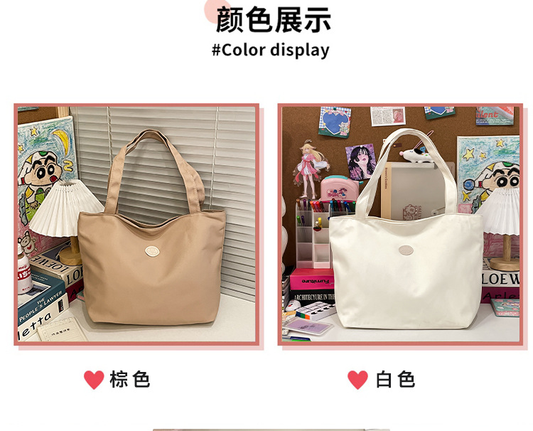 Solid Color Casual Versatile Girls Shoulder Bag Female Korean Version Large Capacity Student Portable Class Commuting Tote Bag