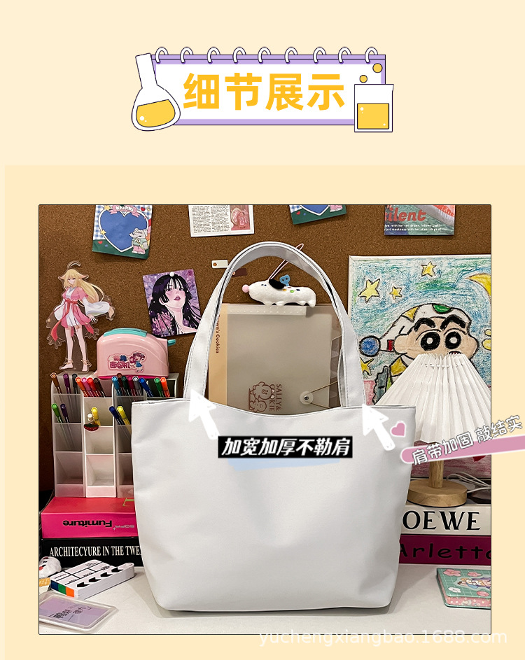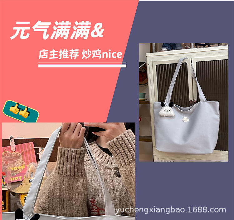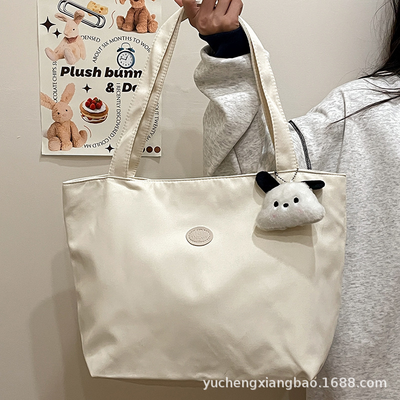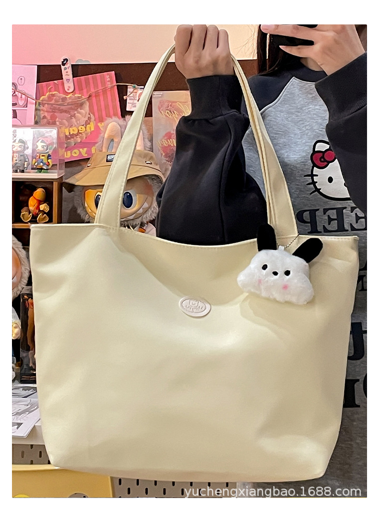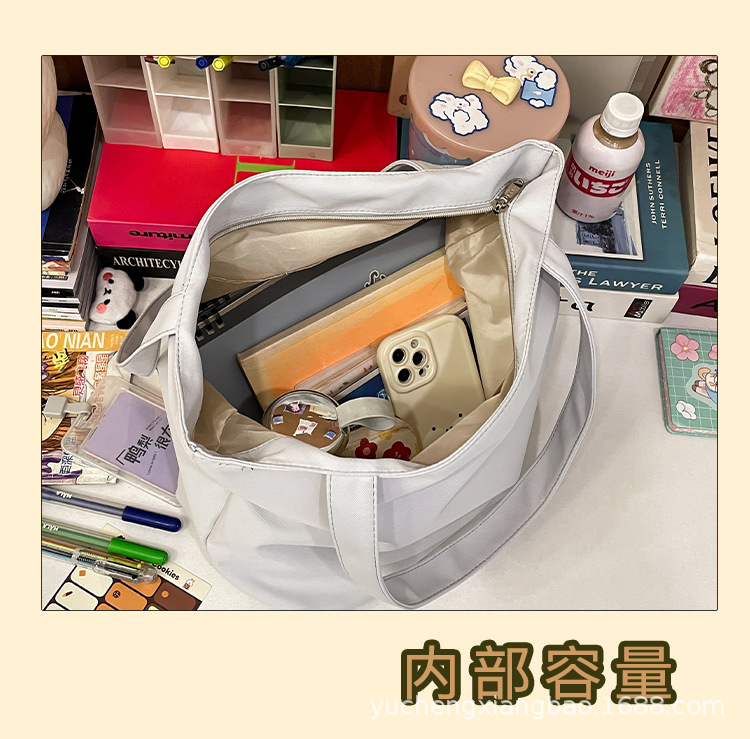 Solid Color Casual Versatile Girls Shoulder Bag Female Korean Version Large Capacity Student Portable Class Commuting Tote Bag