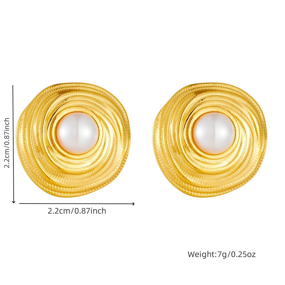 Fashion French Retro Gold Wire Winding Circle Plated 18K Pearl Pendant Stainless Steel Necklace Earrings Ring suit