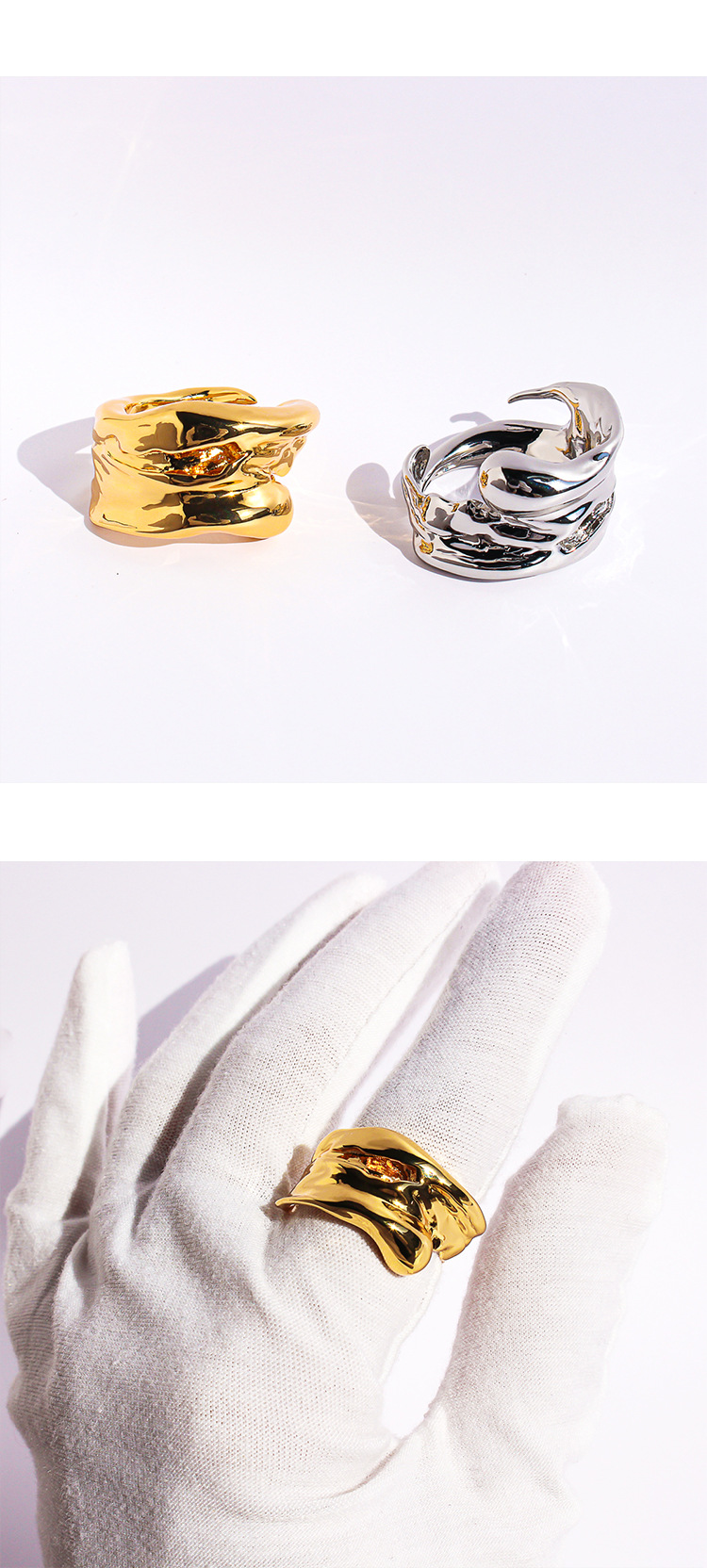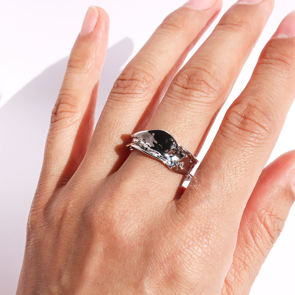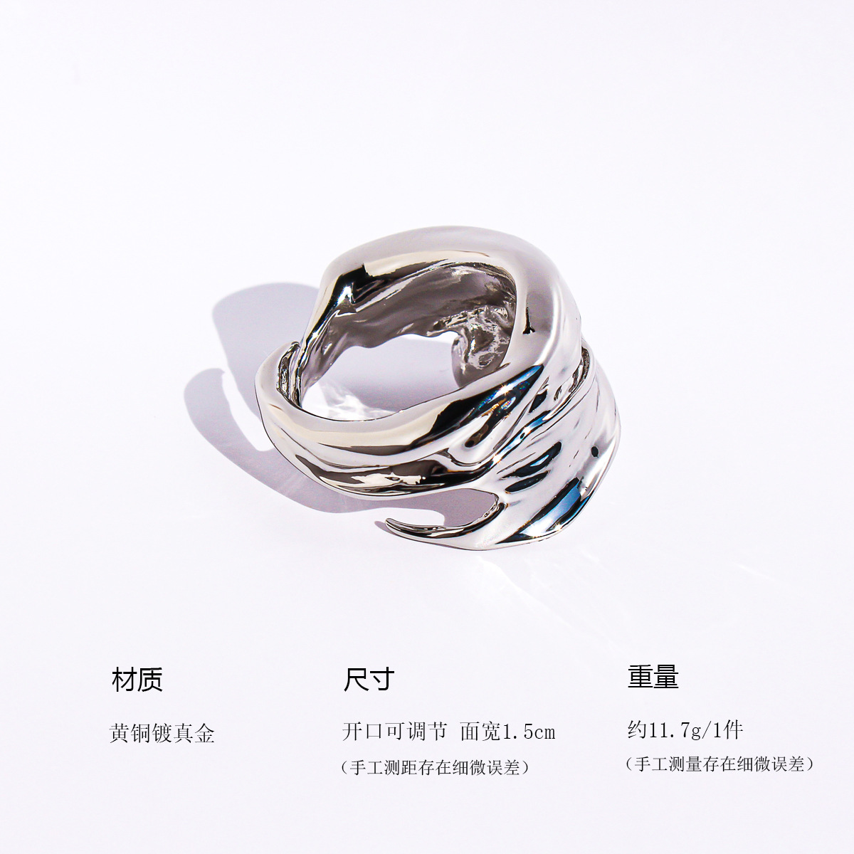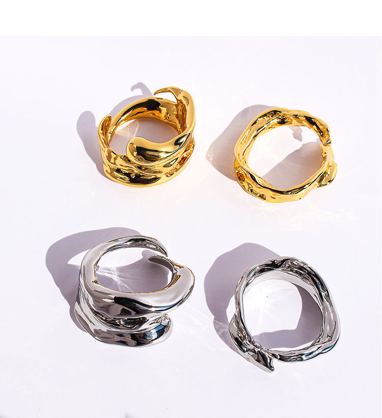 Europe and the United States natural stream fold texture open ring concave-convex texture feeling stacked neutral wind finger ring cross-border 555