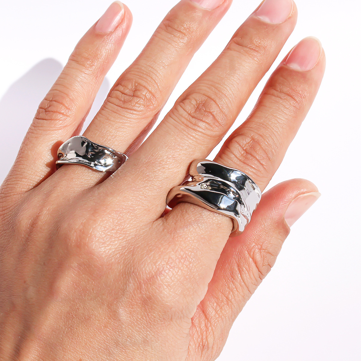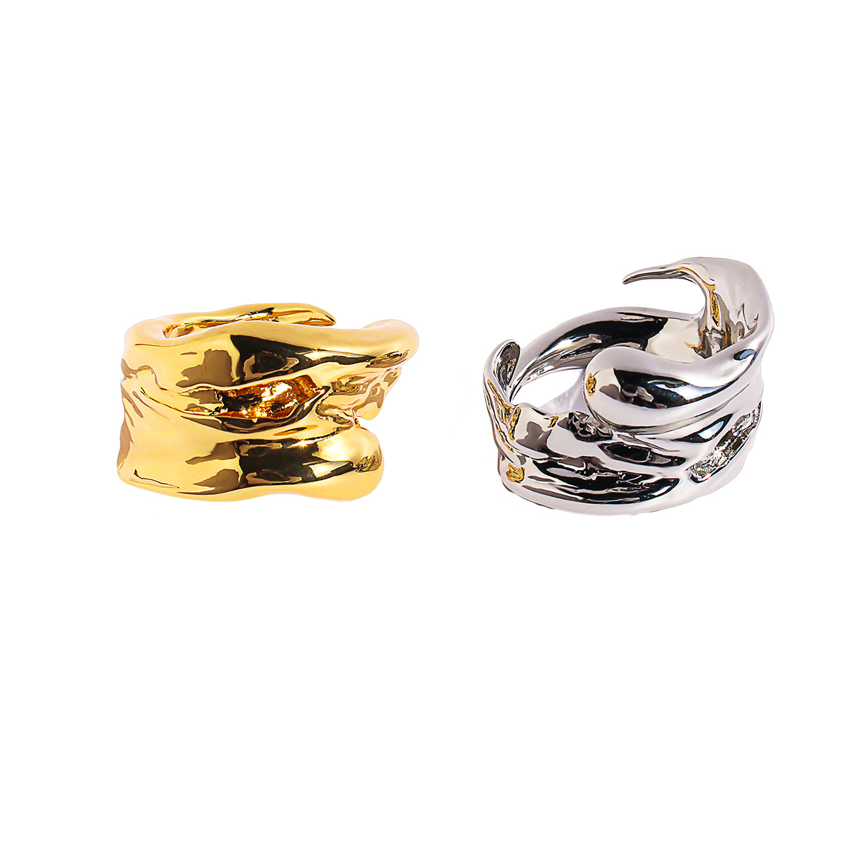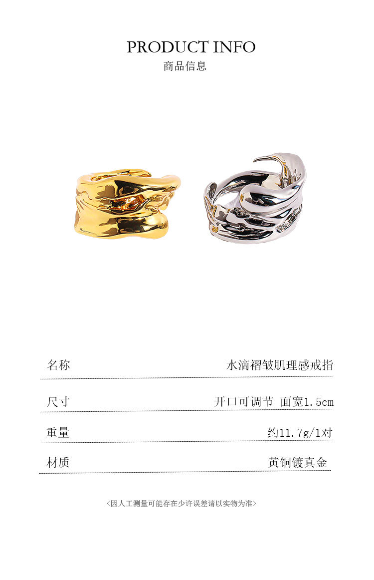 Europe and the United States natural stream fold texture open ring concave-convex texture feeling stacked neutral wind finger ring cross-border 555