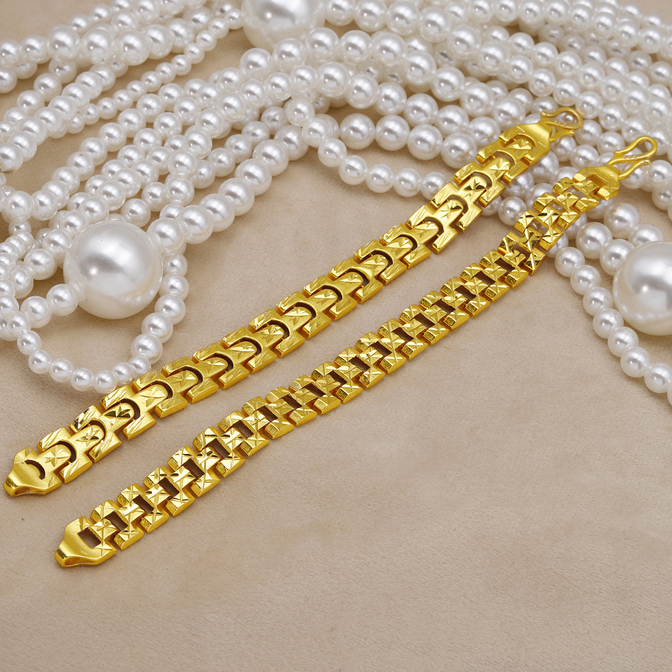Middle East Cross-border 24K Gold Plated Open Rice Copper Bracelet Dubai Women's Bride Wedding Jewelry