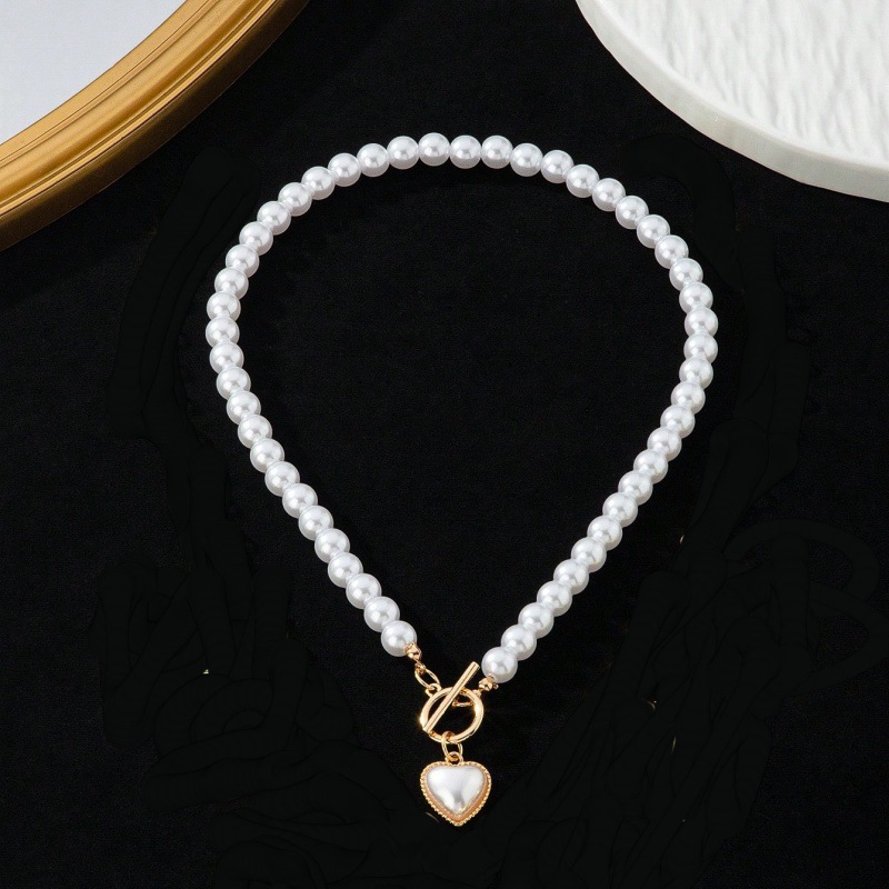 Color: White pearl love necklace