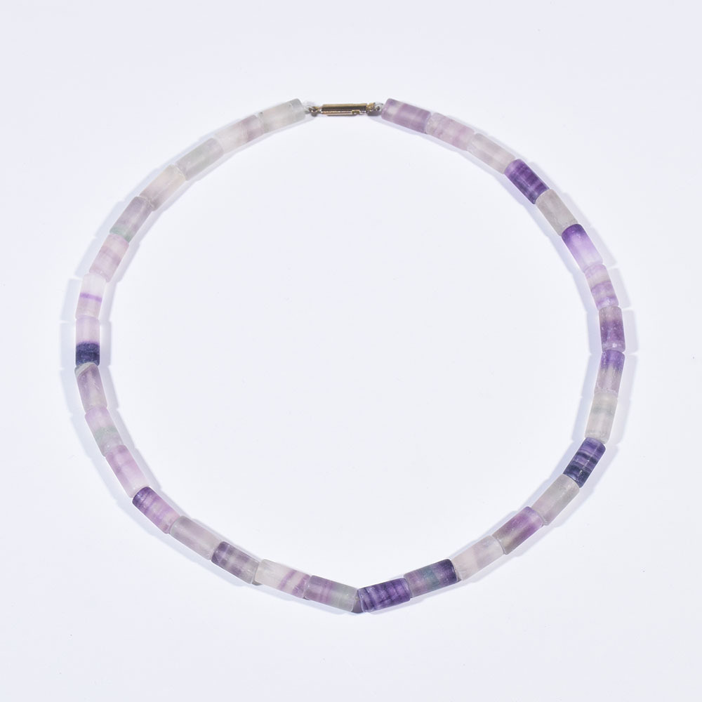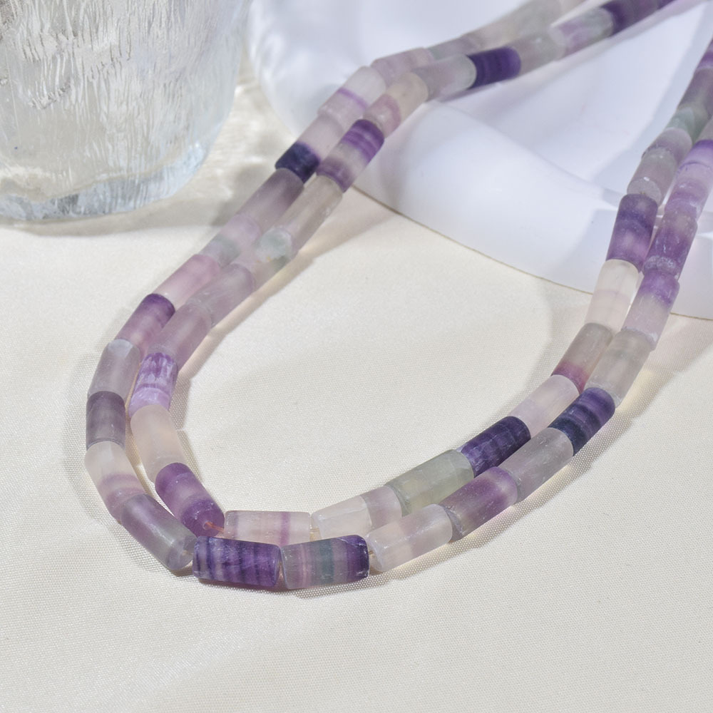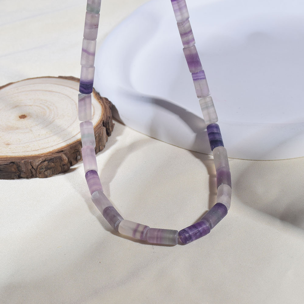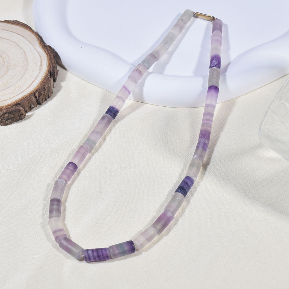 Cross-border Natural Color Fluorite Necklace Women's European and American New All-match Fashion Round Tube Beaded Clavicle Chain Jewelry in stock