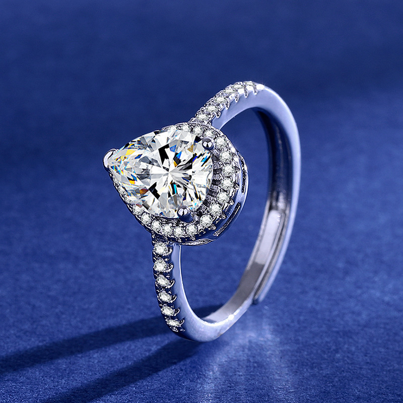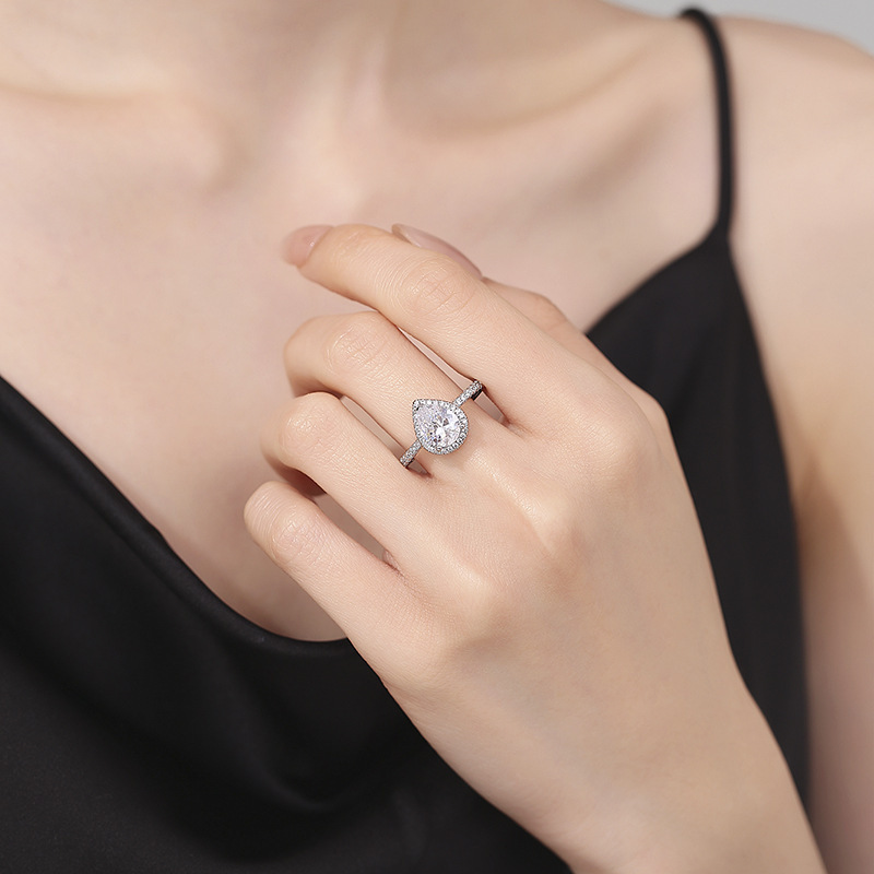New Fashionable Korean Style Drop Shape Simulation Mosan Diamond Open Ring Women's Group Set Zircon Elegant Ring